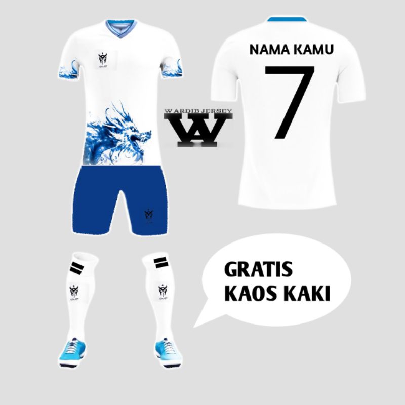 JERSEY FUTSAL BOLA 1 SET GRATIS KAOS KAKI BISA CUSTOM SABLON NAMA DAN NOMOR