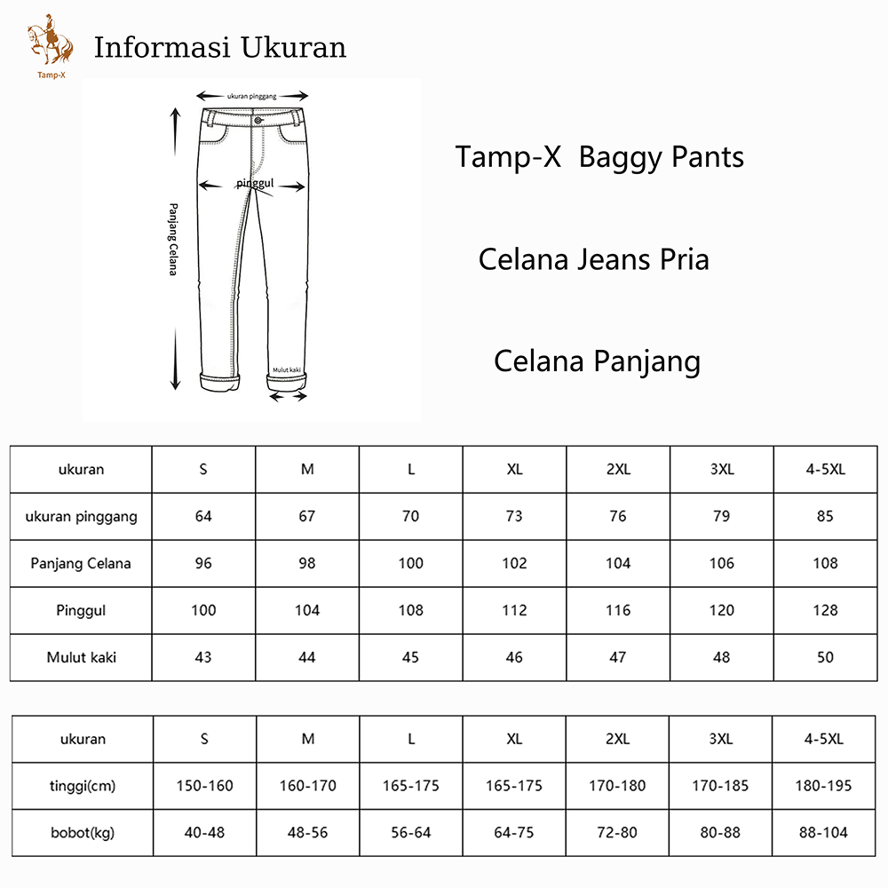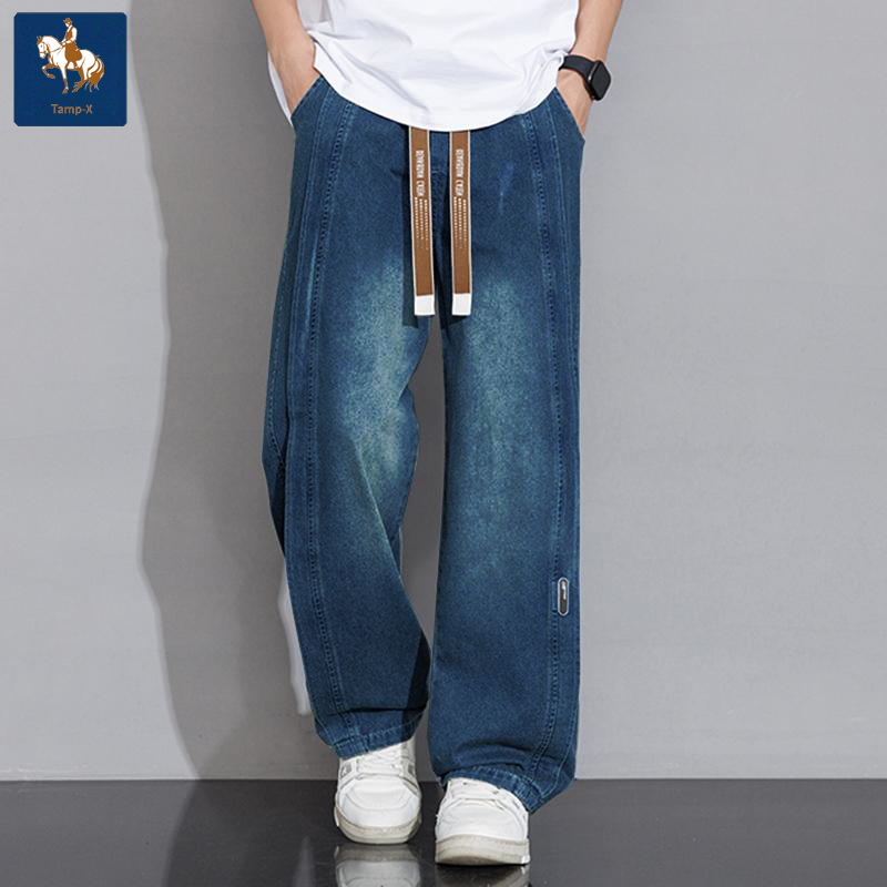 Tamp-X Oversize Celana Jeans Pria Baggy Denim Santai Korean Style Kulot Straight Pinggang Karet Biru Tua premium