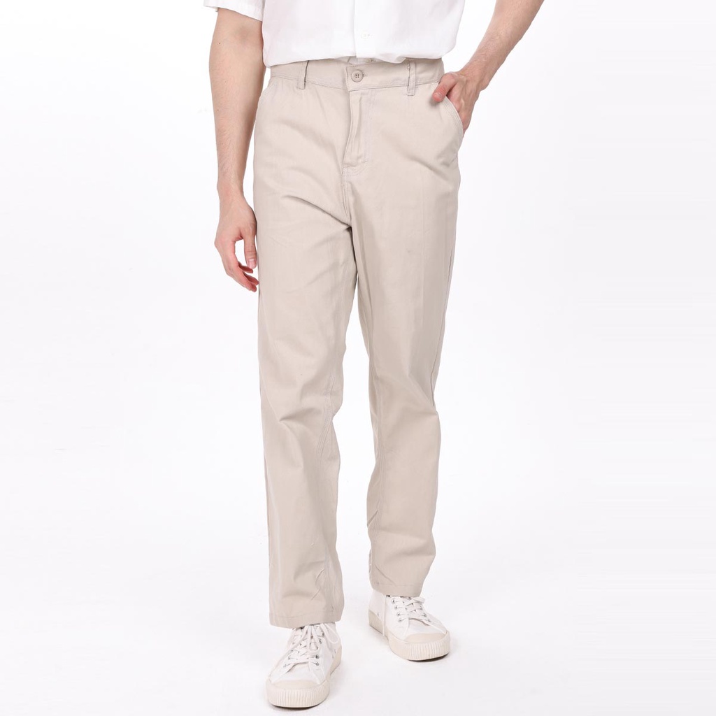 SYMPLE.CO - Celana Chino Pants Panjang Pria Reguler Fit Cream Broken White Beige