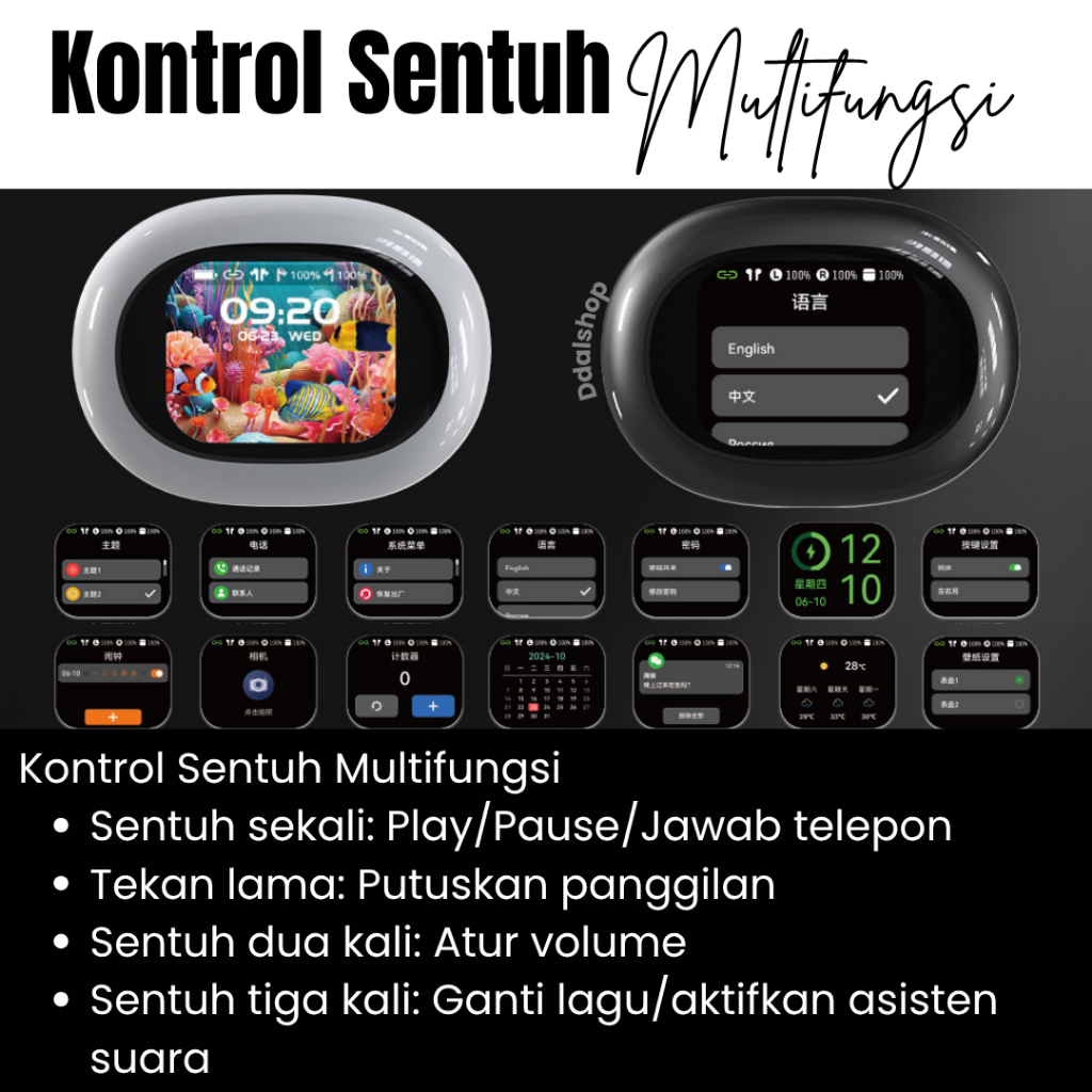 HEADSET BLUETOOTH 5.4 A16 PRO TWS LAYAR SENTUH PINTAR SUARA JERNIH BASS BATERAI AWET AUTO CONNECT