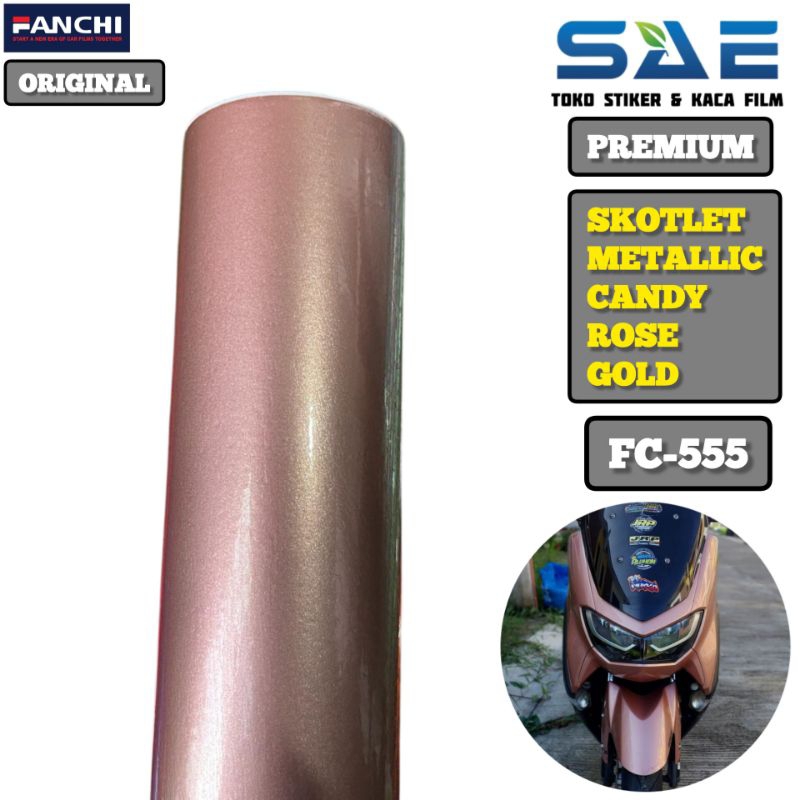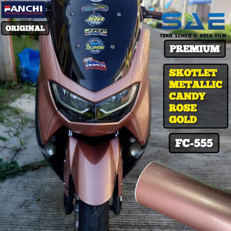 Skotlet Rose Gold Metallic Candy Sticker Motor Merek Fanchi Berperekat Premium Original L-50Cm