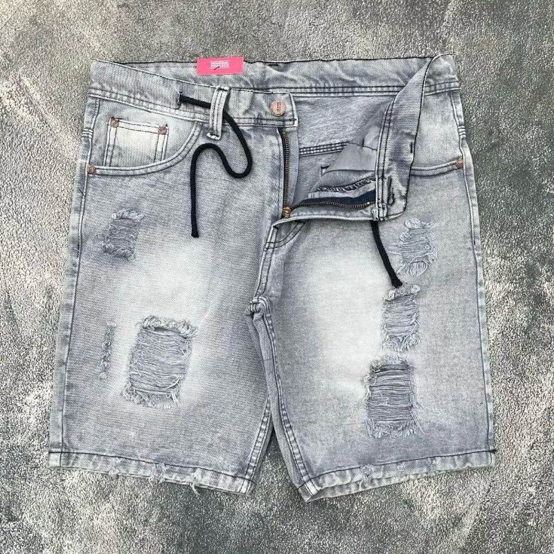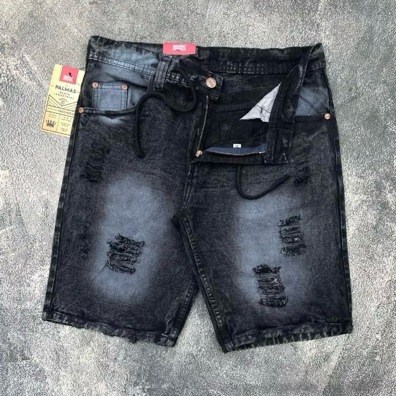 Celana Jeans Pendek Sobek Hitam Bermuda Pria Distro Premium
