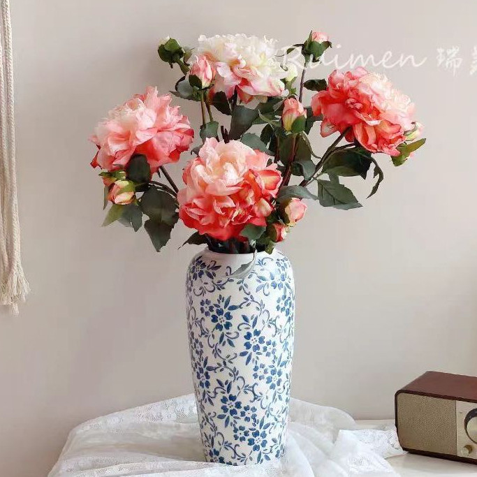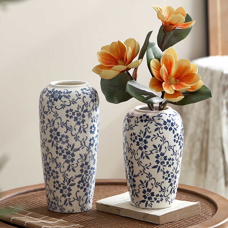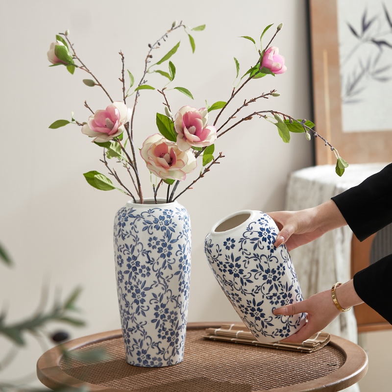 WAYHOME MARKET Vas Keramik Kreatif Cina Biru Dan Putih Baru Vas Bunga Kering Bunga Kering Vintage