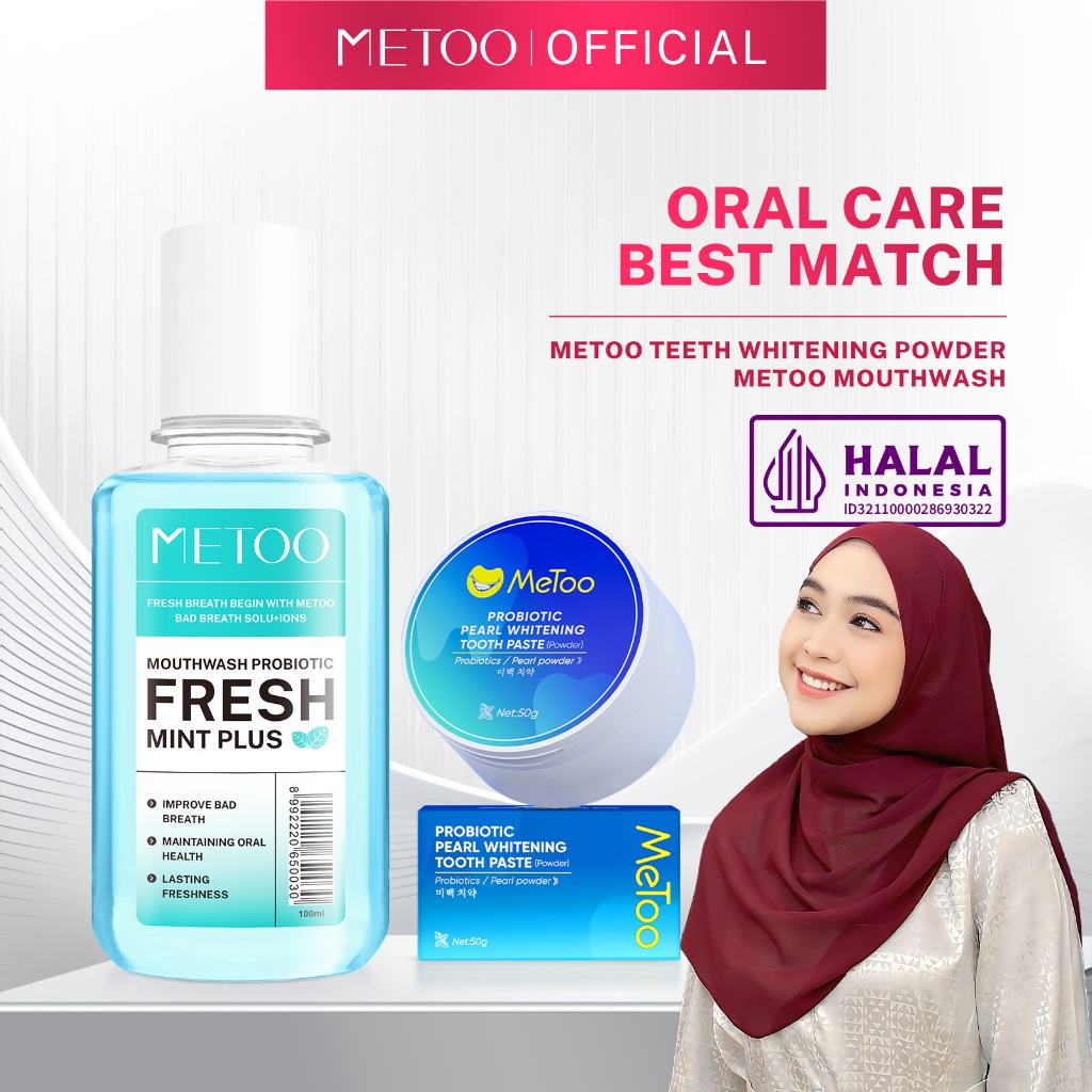 PEMUTIH GIGI METOO TEETH WHITENING POWDER+ FRESH MINT MOUTHWASH 100ML/ TRAVEL ESSENTIAL SET /PROBIOTIK / NAFAS SEGAR
