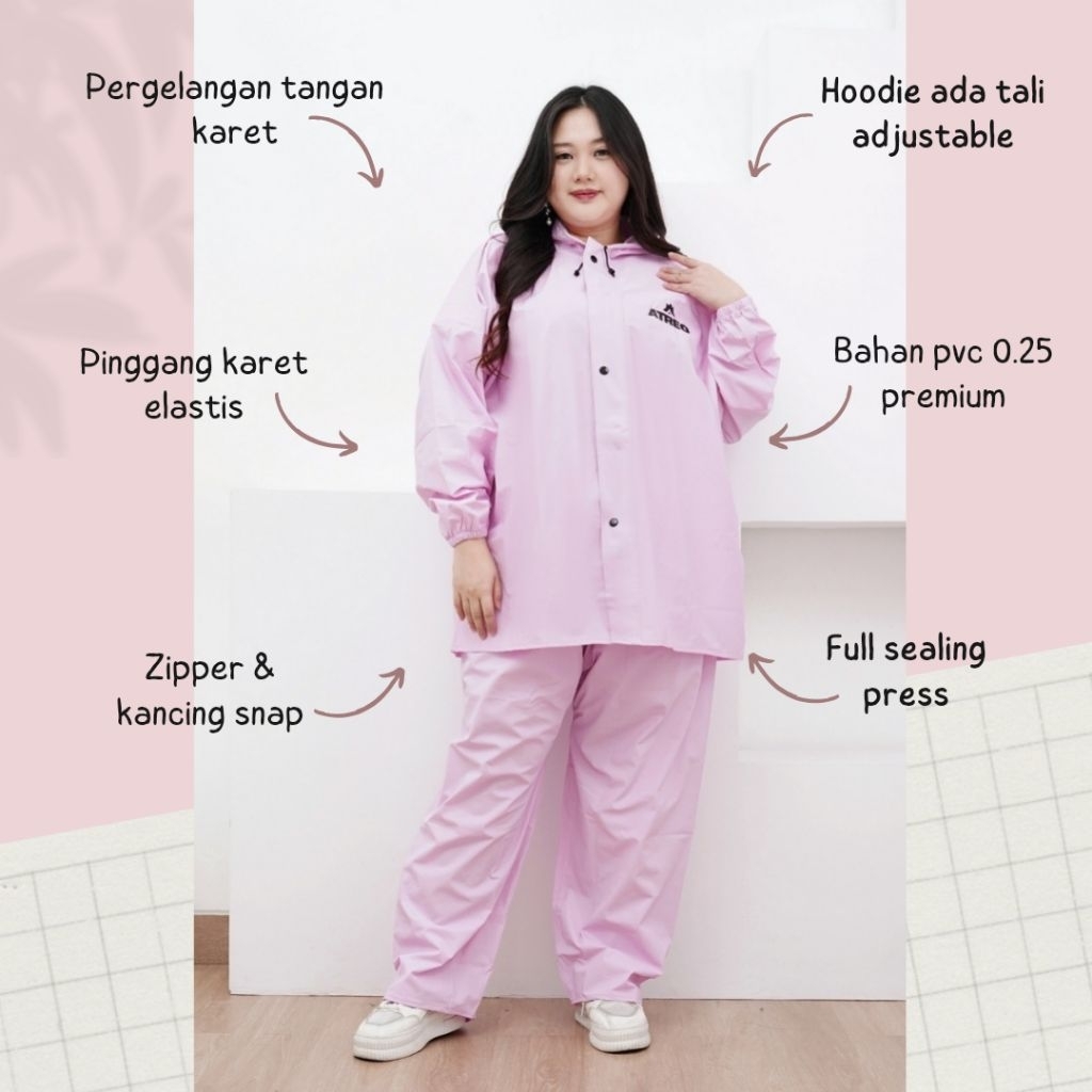 Jas Hujan Pria Wanita Jumbo Super Besar Tebal Kuat L- 4XL Seal Press by Jas Hujan ATREO Setelan