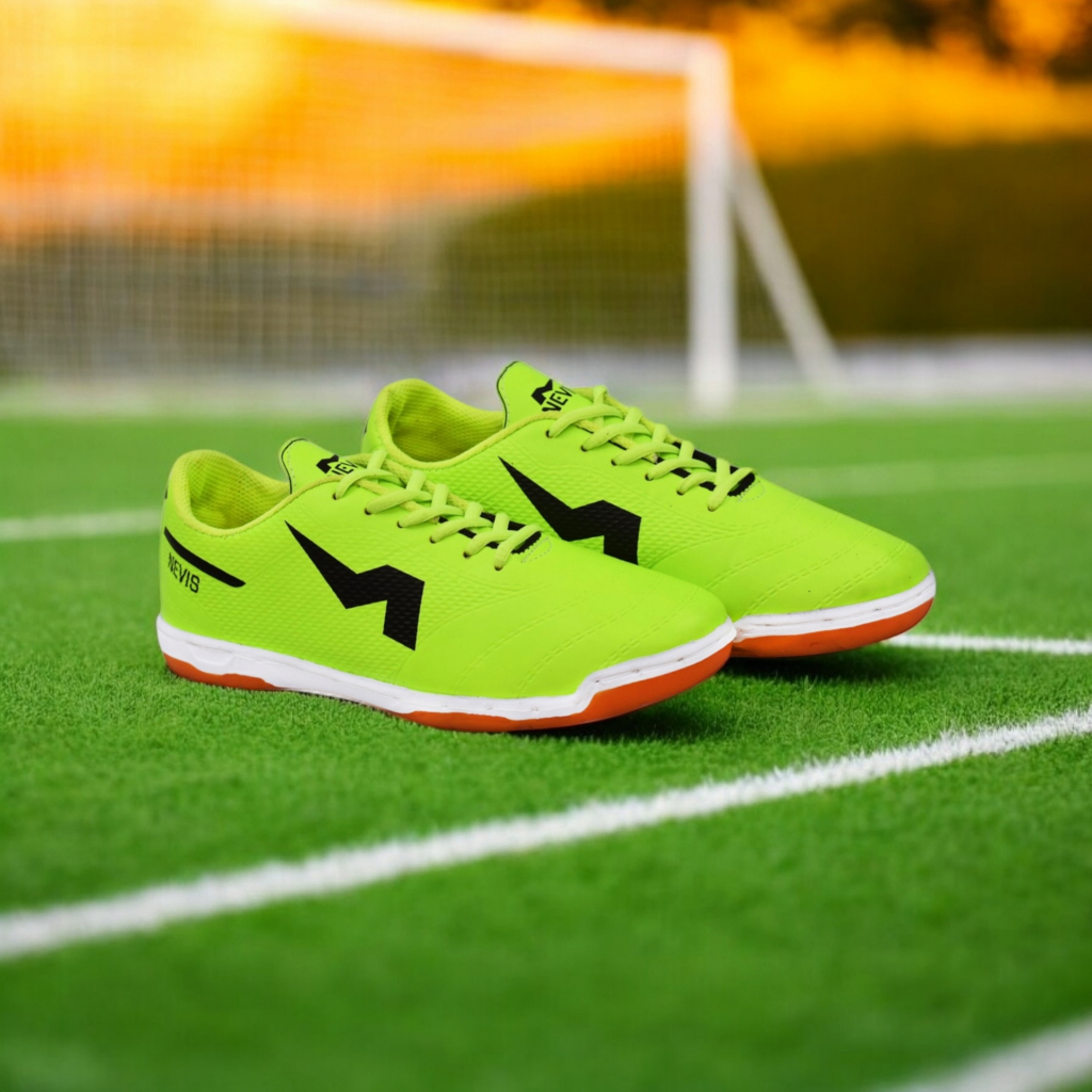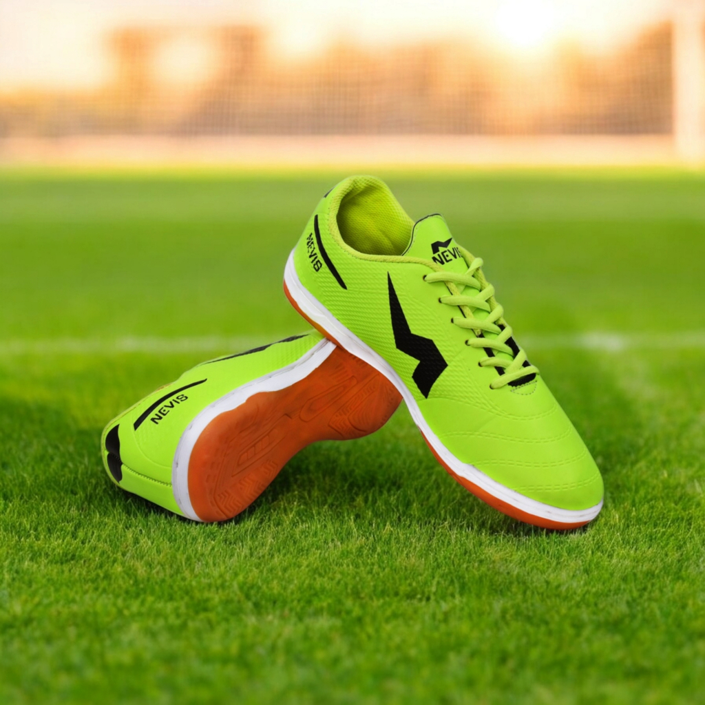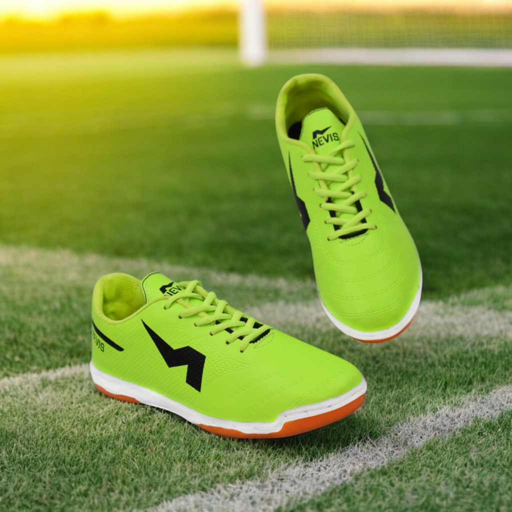 NEVIS Sepatu Futsal Leon Hijau Stabilo Original Free Jahit Sol Karet