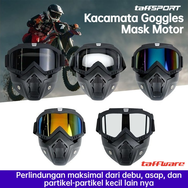 TaffSPORT Kacamata Google Mask Retro Anti Glare Windproof Trail Cross Anti Debu Kacamata Helm BOGO