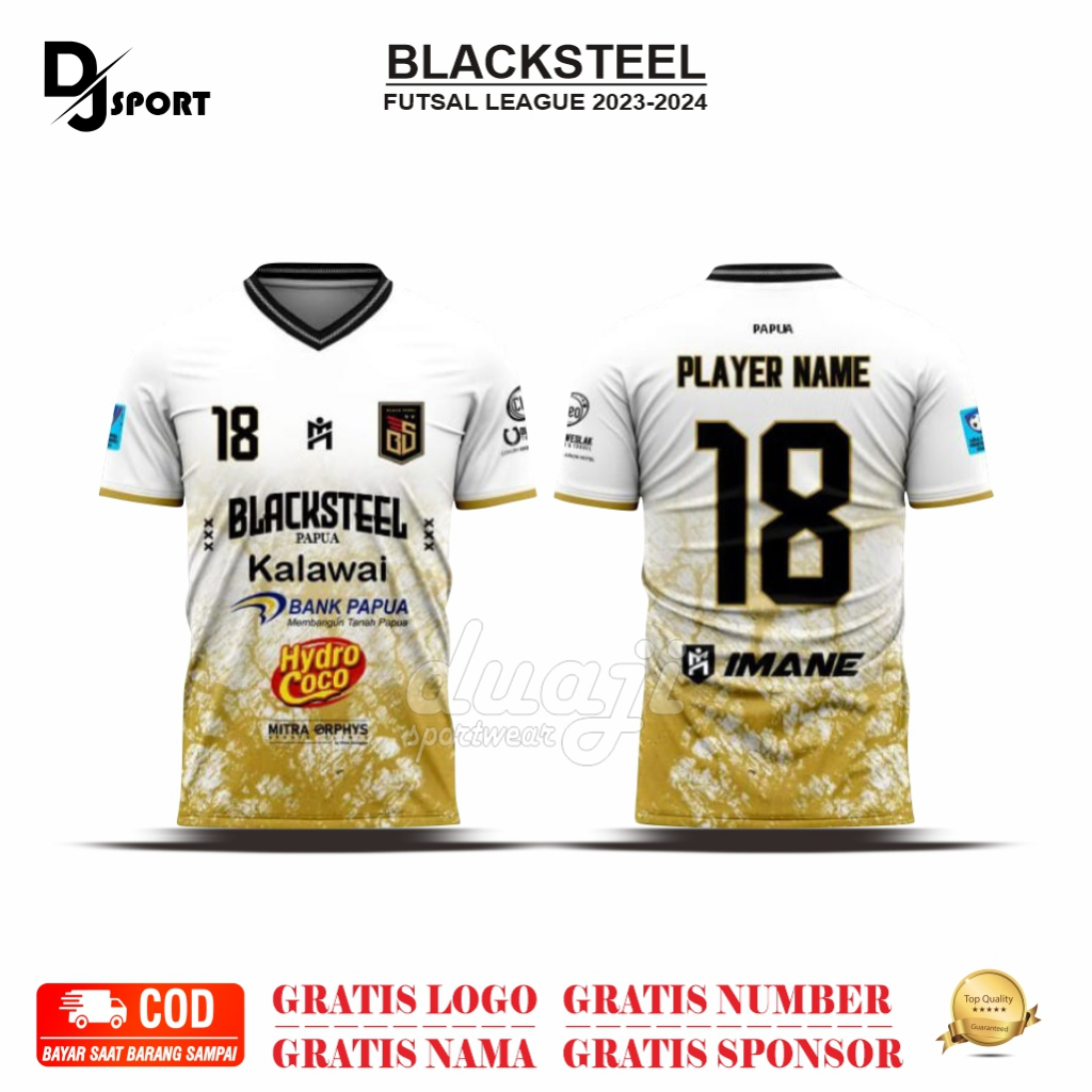 Jersey Bola Futsal Blacksteel Away 2023-2024 Full Printing Premium Gratis Pasang Nama Size Anak & D3W4SA