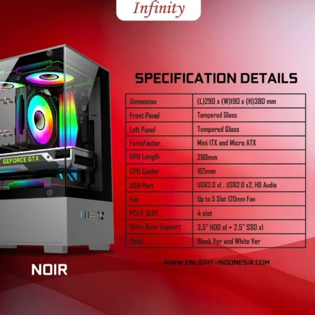INFINITY NOIR FREE 3 FAN - M-ATX GAMING CASE CASING PC