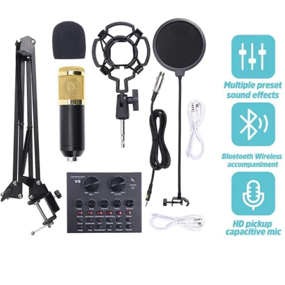 PAKET LENGKAP LIVE STREAMING KOMPLIT MIC CONDENSER BM 800 + SOUNDCARD V8