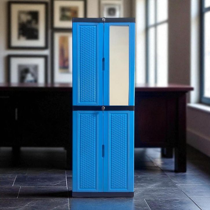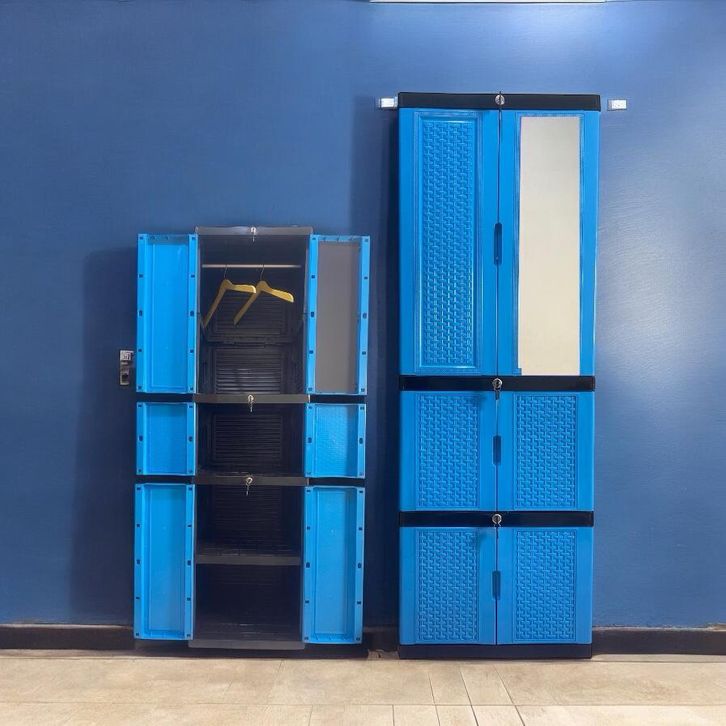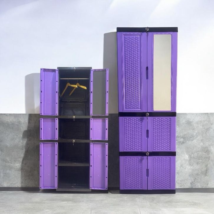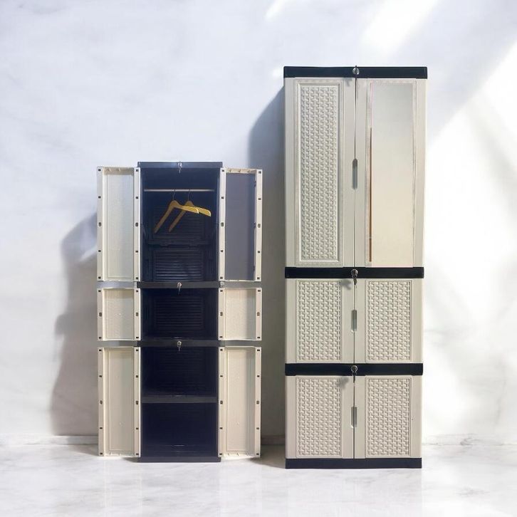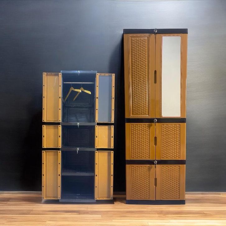 BISA LDM Lemari Susun Pakaian Baju Plastik Minimalis Kaca Kunci Gantungan Baju Furniture