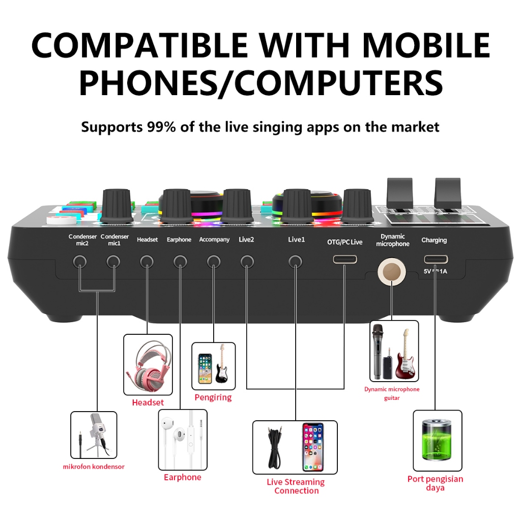 Siborie F999 Soundcard Original Paket Lengkap Mixer Bluetooth Soundcard For Streaming Langsung Karaoke Siap