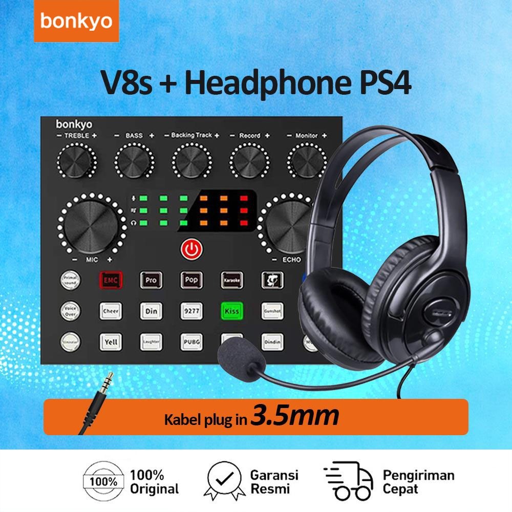 Bonkyo V8S sound card+earphone set TIKTOK peralatan live bernyanyi rekaman khusus kartu audio profesional lagu K []