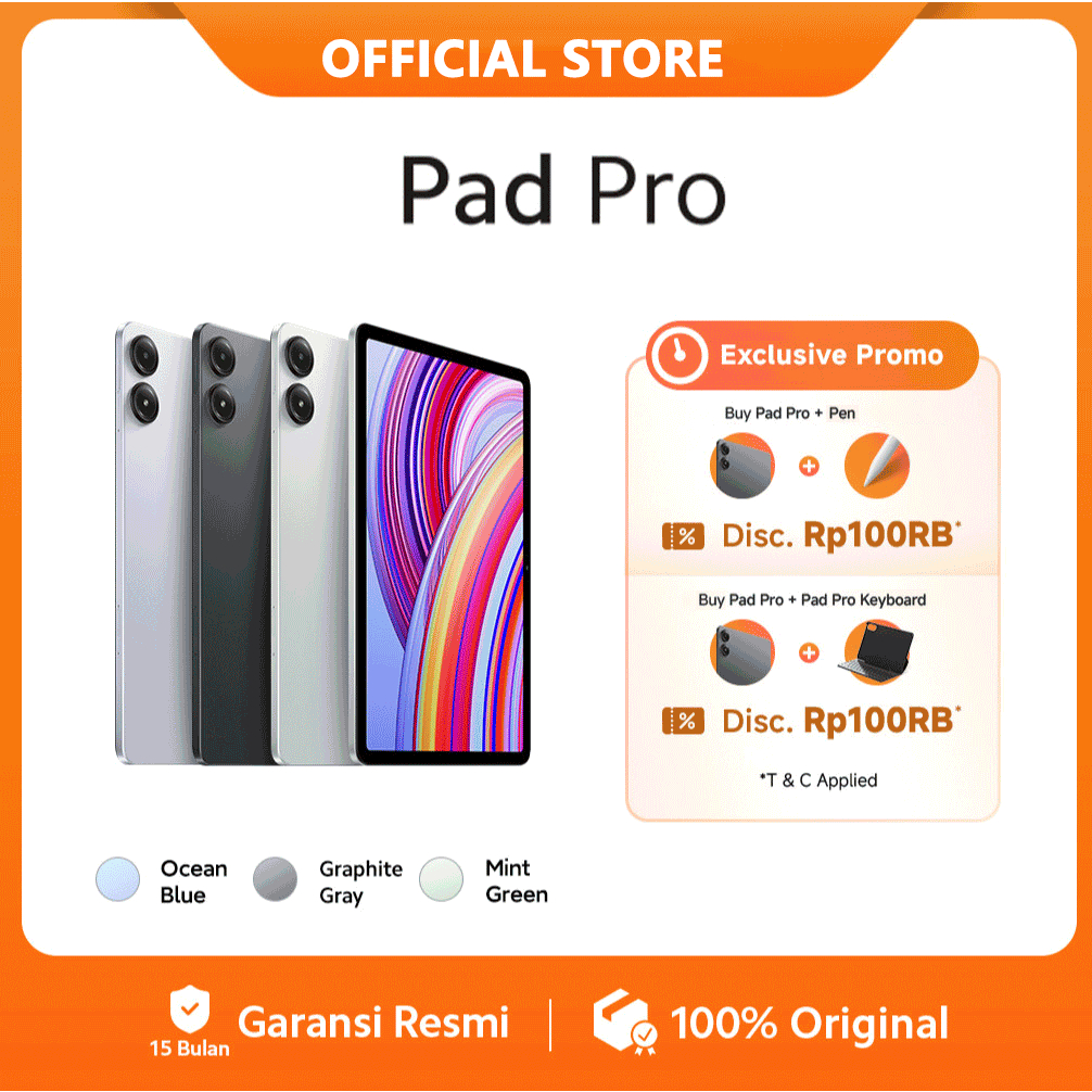 Xiaoml Redm Pad Pro Tablet PC (12/512GB) | Snapdragon 7s Gen 2 Mobile Platform | Xiaoml HyperOS | Baterai 10.000 mAh Tablet Xiaomi