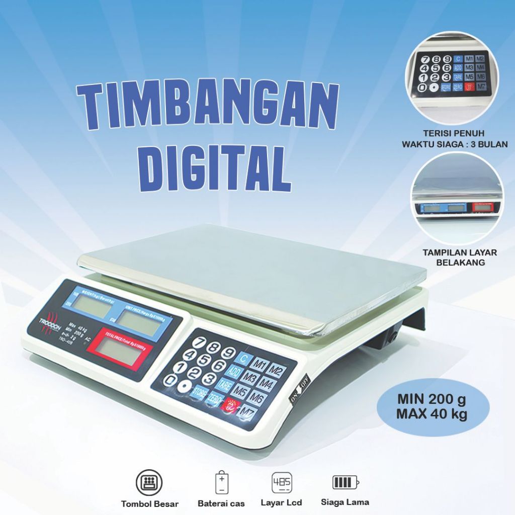 (2Tampilan)Timbangan Digital Buah 40Kg Timbangan Laundry Timbangan 40kg Double Display