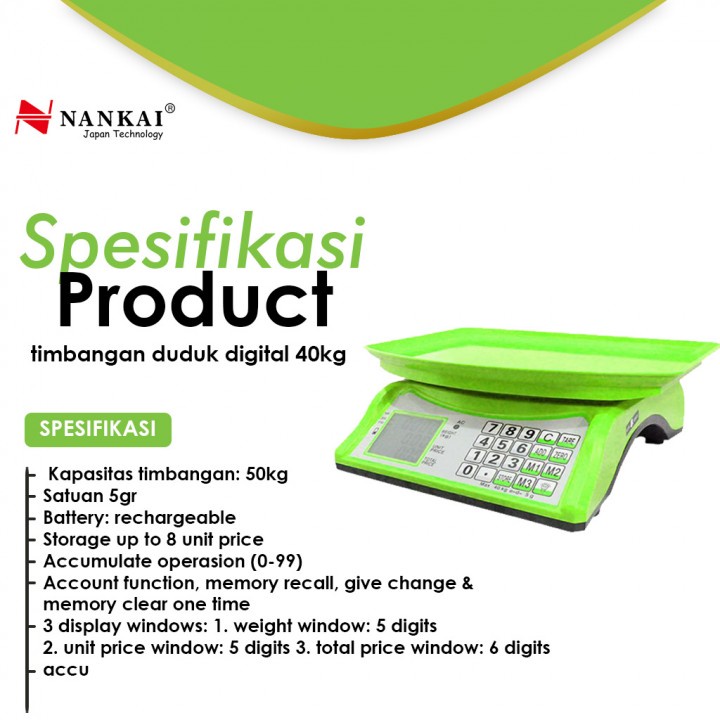 Timbangan Duduk Digital 40KG NANKAI / Timbangan ACS DIGITAL NANKAI 40 KG