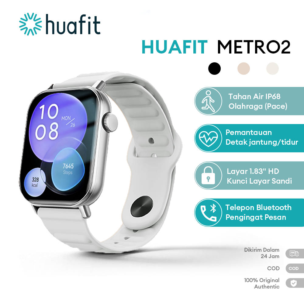 Official Huafit Smartwatch Metro 2 I Wallpaper Kustom | Pemantau Kesehatan 24 Jam | Layar HD 1.83" | Panggilan BT | Tahan Air IP68 Smart Watch
