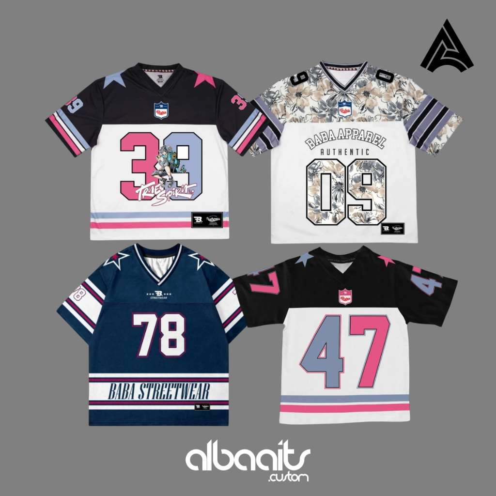 TANPA DP Jersey Custom Nama dan Nomor Baju Jersey Streetwear Oversize Boxy Fit Retro Unisex Vintage Jersey Ballet FootBall Fu