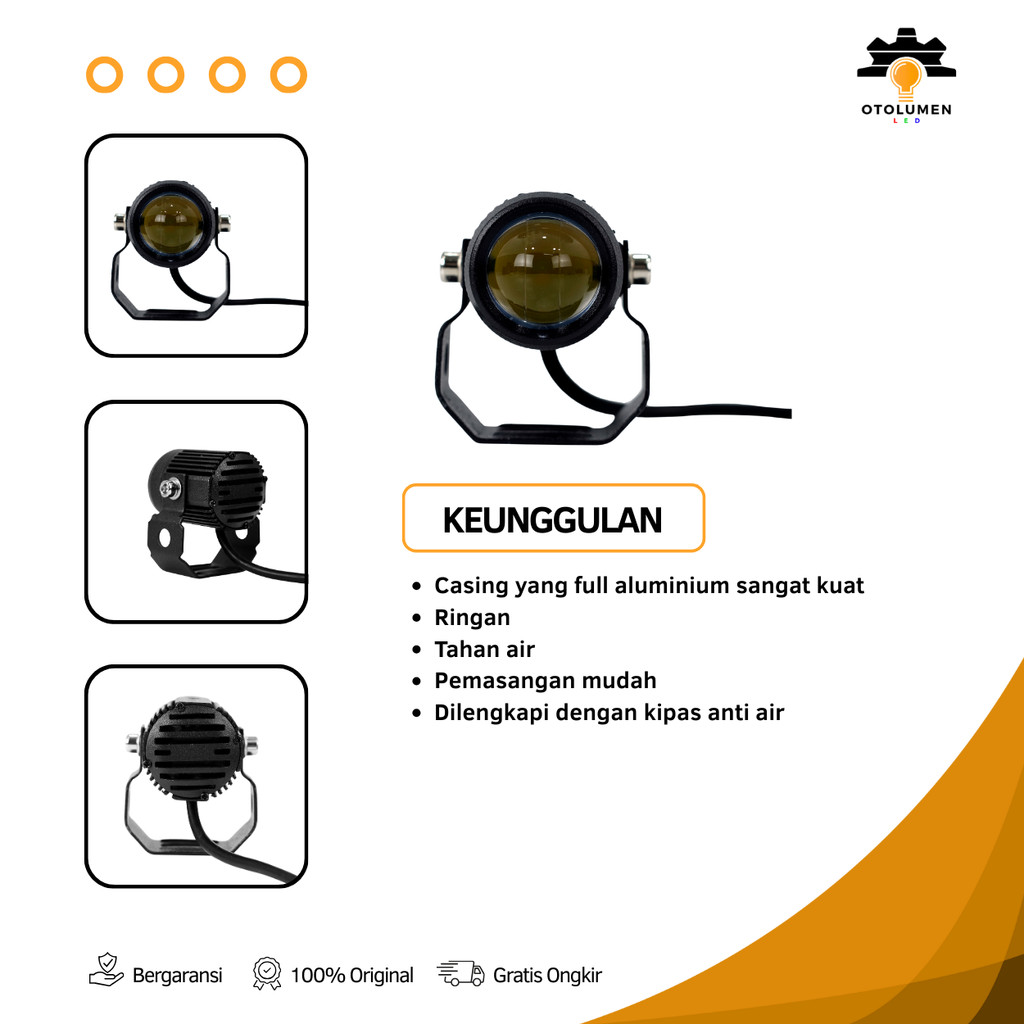 Lampu Tembak 1 Mata D2 Laser Q2 1 Set Putih Kuning Kipas Super Terang Motor Mobil - LUMINOSLED