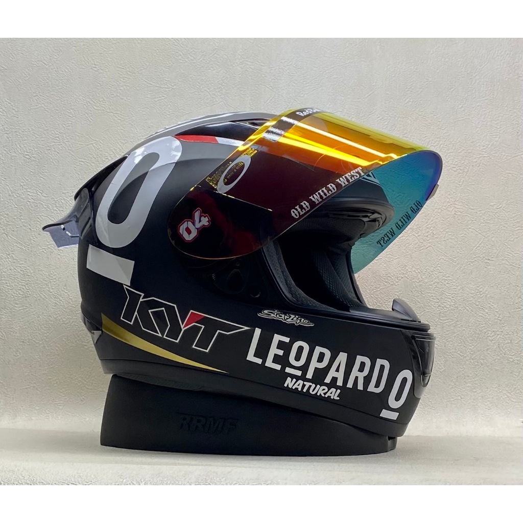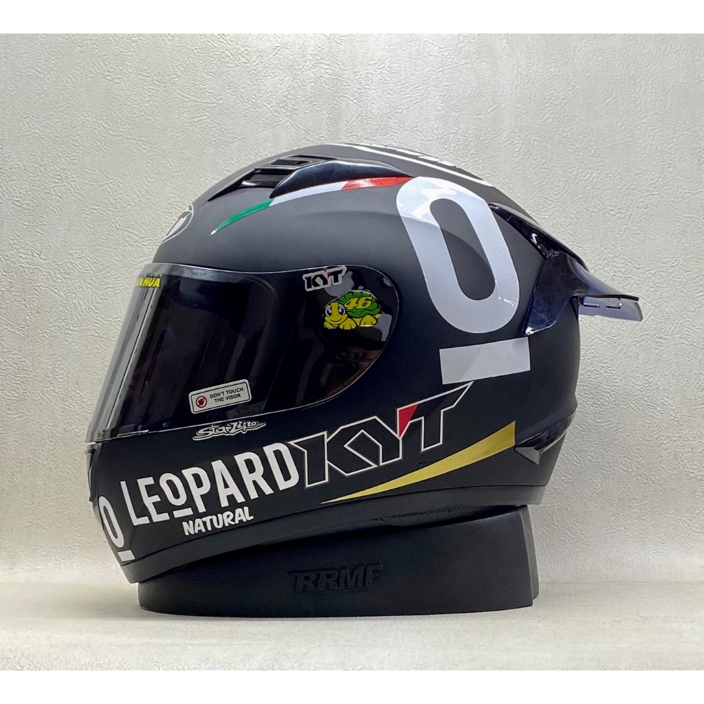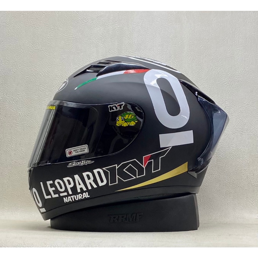 HELM KYT R10 SOLID BLACK GLOSSY || BLACK DOFF / PAKET STIKER LEOPARD PUTIH