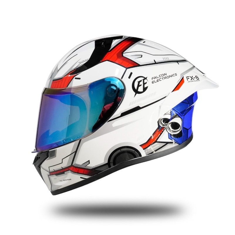 HELM FULL FACE SKJ FALCON FX-8 UNICORN GUNDAM WHITE BLUE KACA BLUE SNI HELM FULL FACE DEWASA SNI HELM FULL FACE PAKET GA