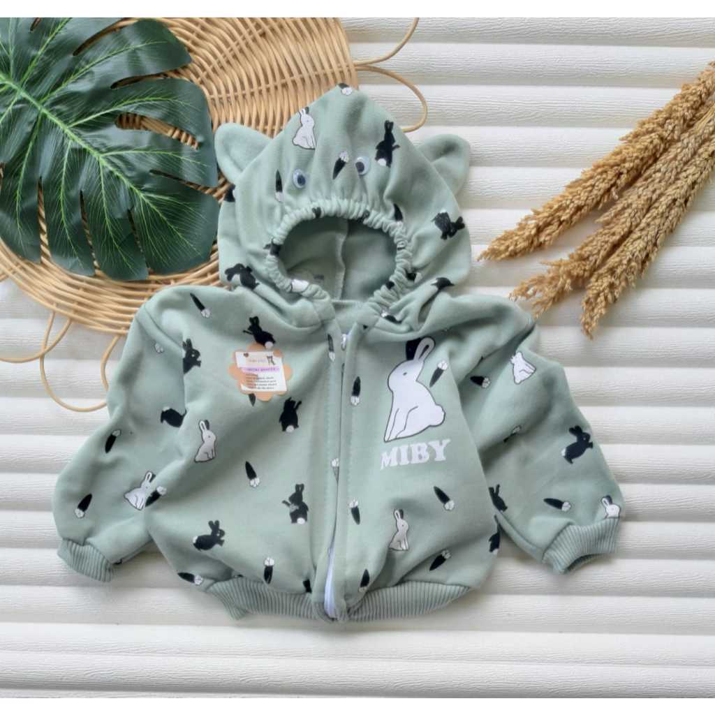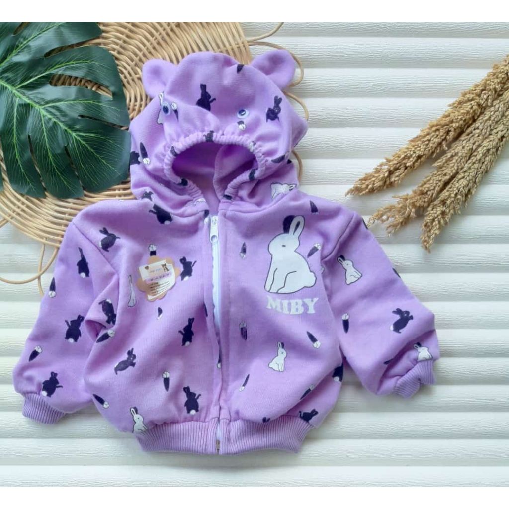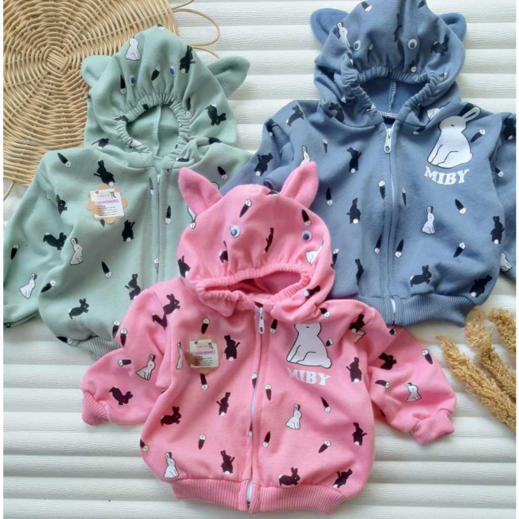 jaket bayi karakter kelinci untuk usia 0-7 bulan max BB 7 kg, bahan fleece