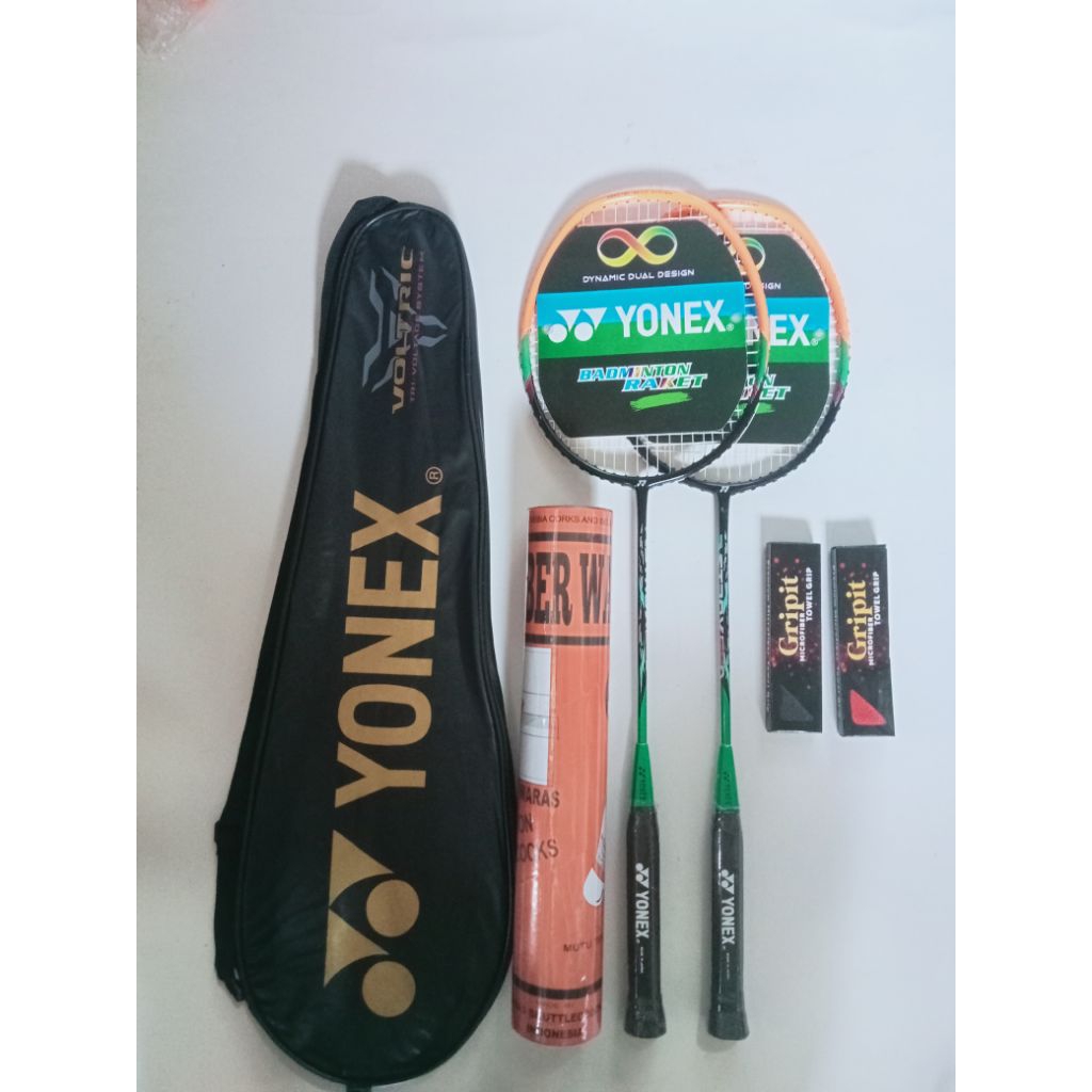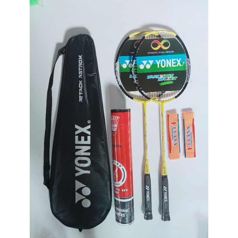 Raket Badminton Paket Hemat 2 Raket 1 Tas 2 Grip & Bonus Kok Isi 12 Made In China