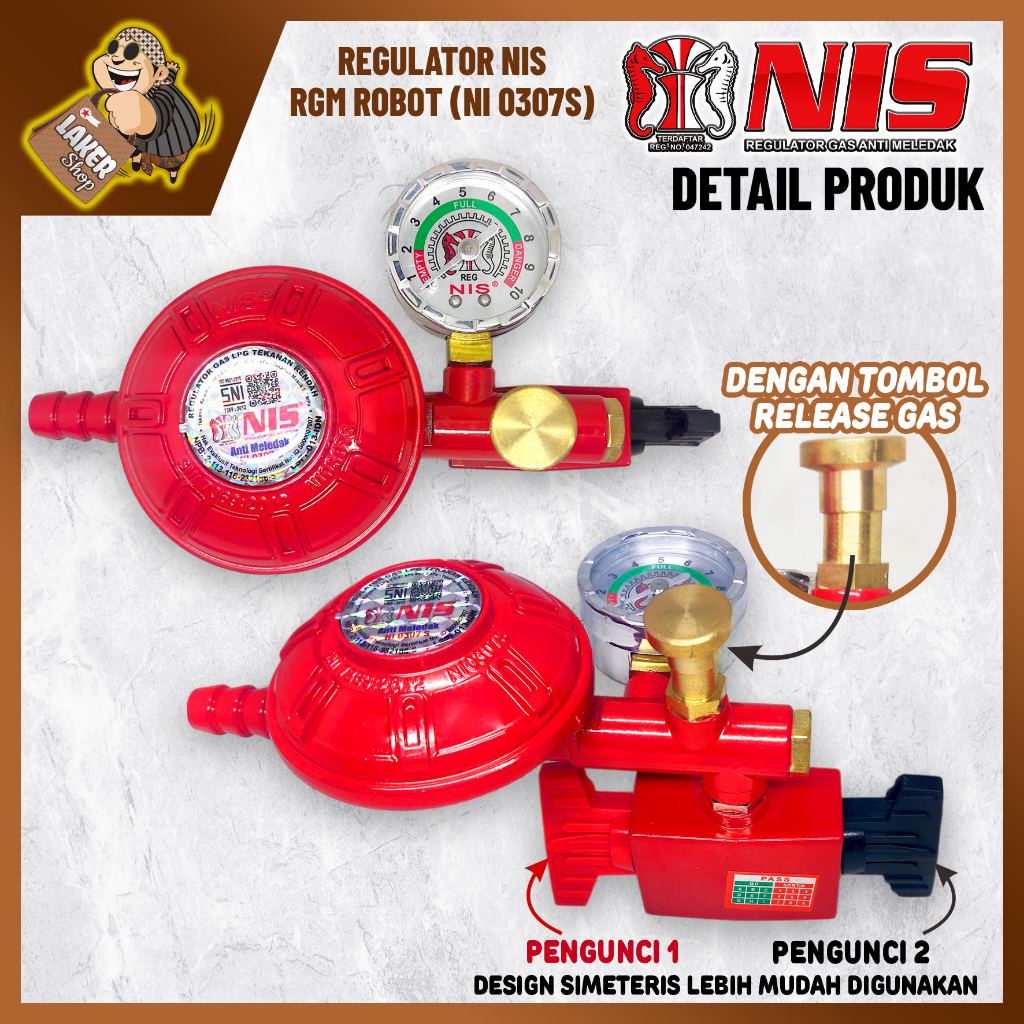 PAKET HEMAT NIS SELANG GAS LAPIS BAJA + REGULATOR ROBOT (NI 0307 S)