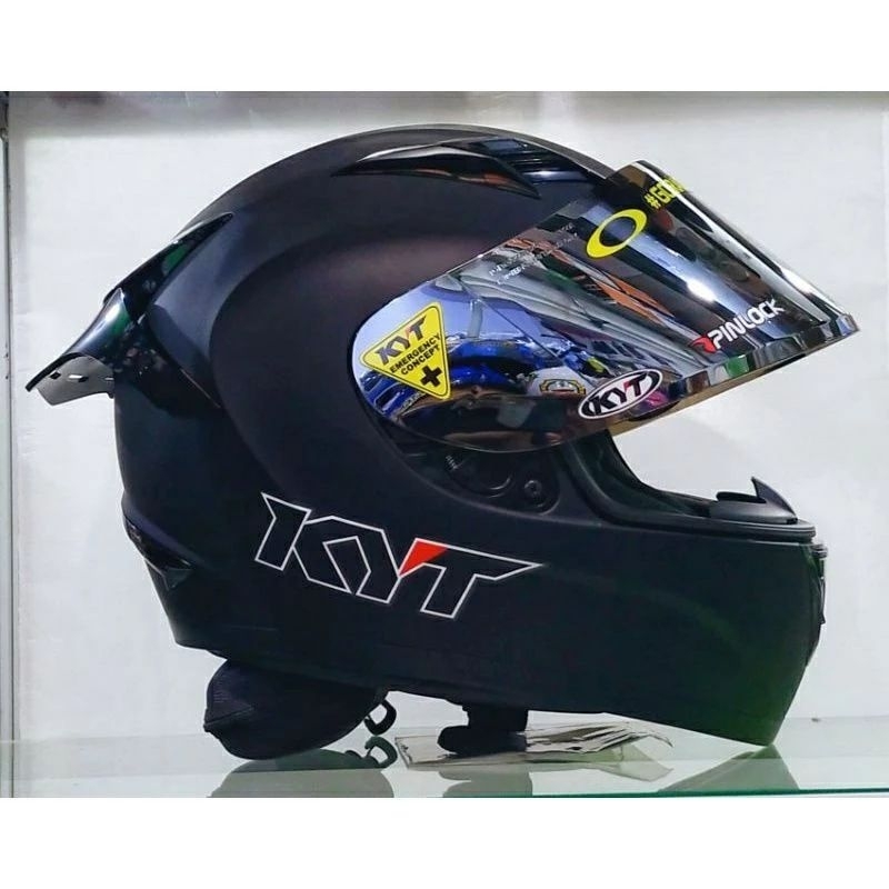 Helm Full Face KYT R10 Solid Black Doff Paket Ganteng