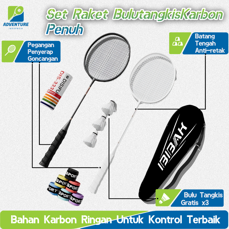 2 PCS Raket BuluTangkis Raket Badminton Bahan Full Carbon GRATIS TAS & PAKET 3 KOK