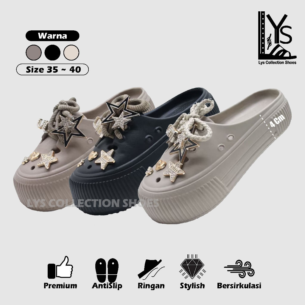 Sandal Selop Kodok Wanita Korean Style Bahan Karet EVA Anti Slip Model Jibbitz Tali Bintang Terbaru