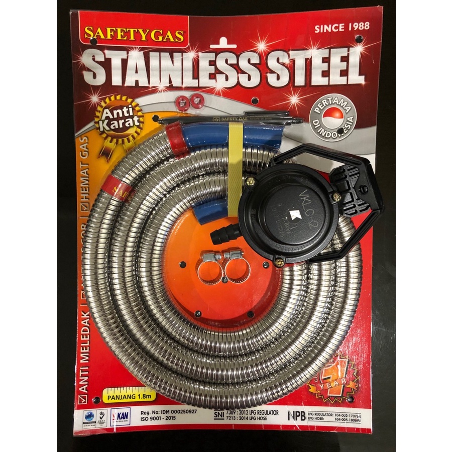 SELANG SAFETY REGULATOR GAS LPG KEPALA GAS KATSURA VKLC-2 KAWAT BAJA STAINLESS
