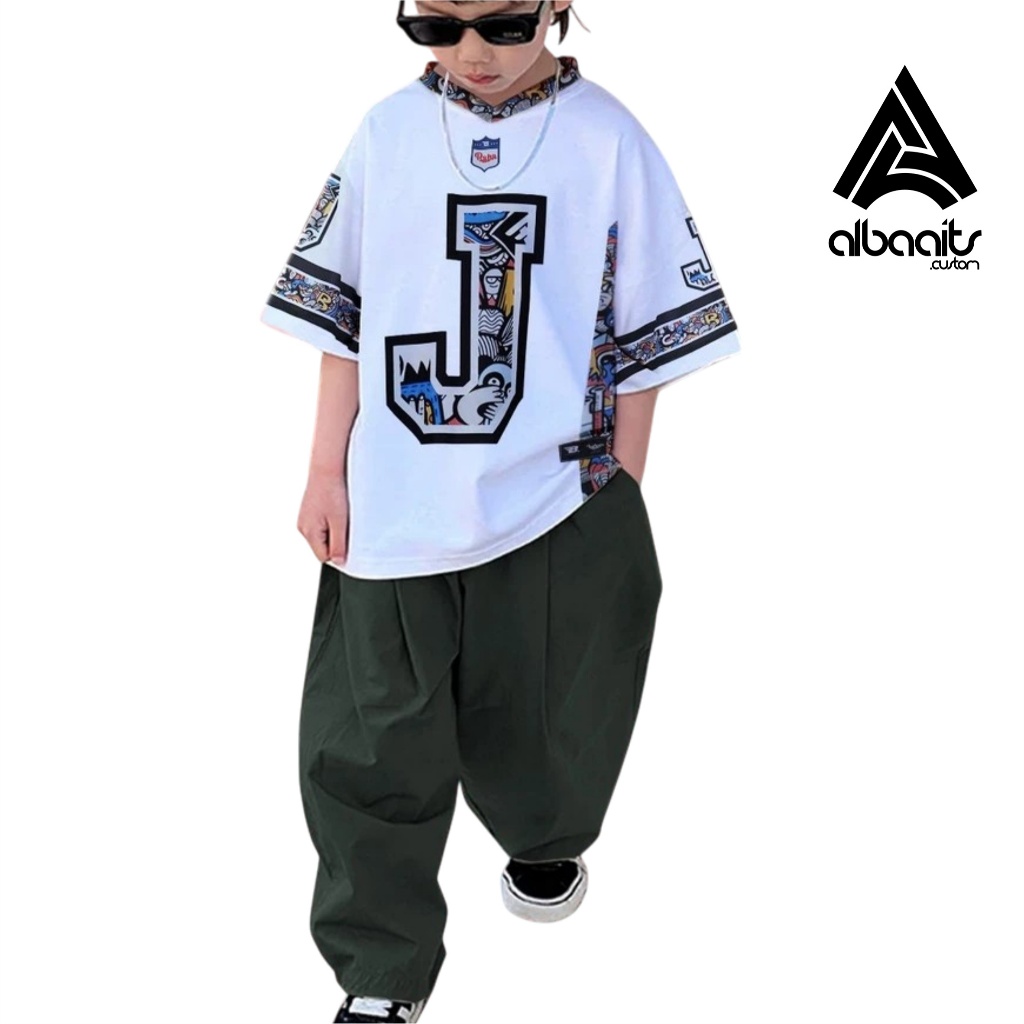 TANPA DP Baju anak Jersey Streetwear Oversize Boxy Fit Retro Unisex Vintage Futsal Voly Tenis Hitam dan Putih Costume Jersey Ba