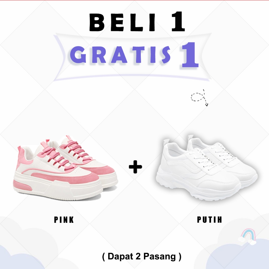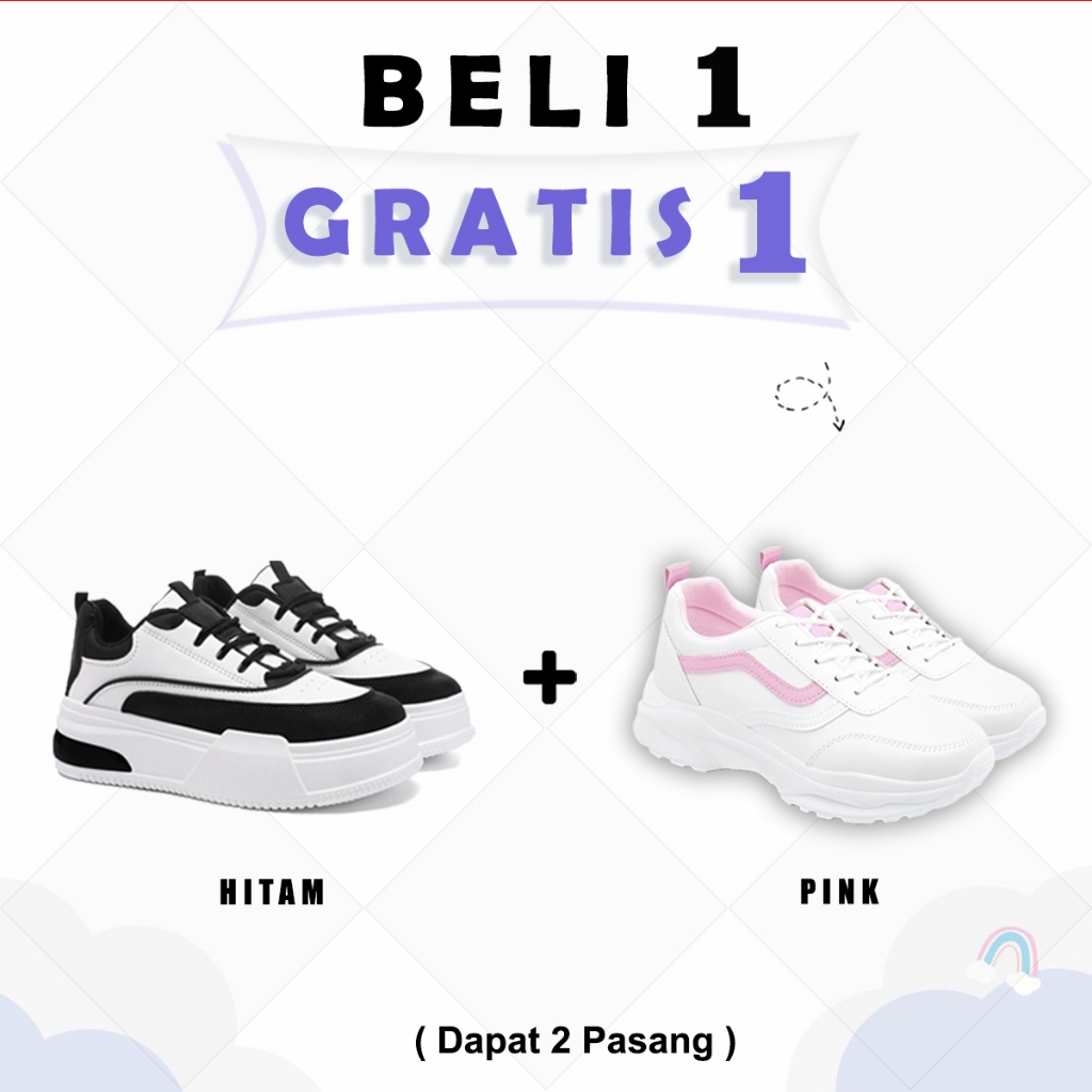 Beli 1 Gratis 1 Sepatu Sneakers Olahraga Pria Wanita jalan Santai Sepatu sekolah