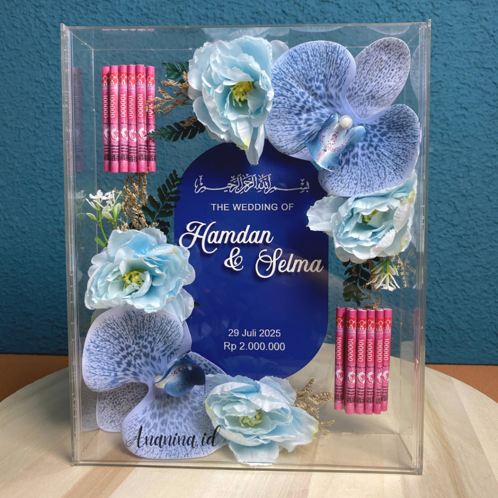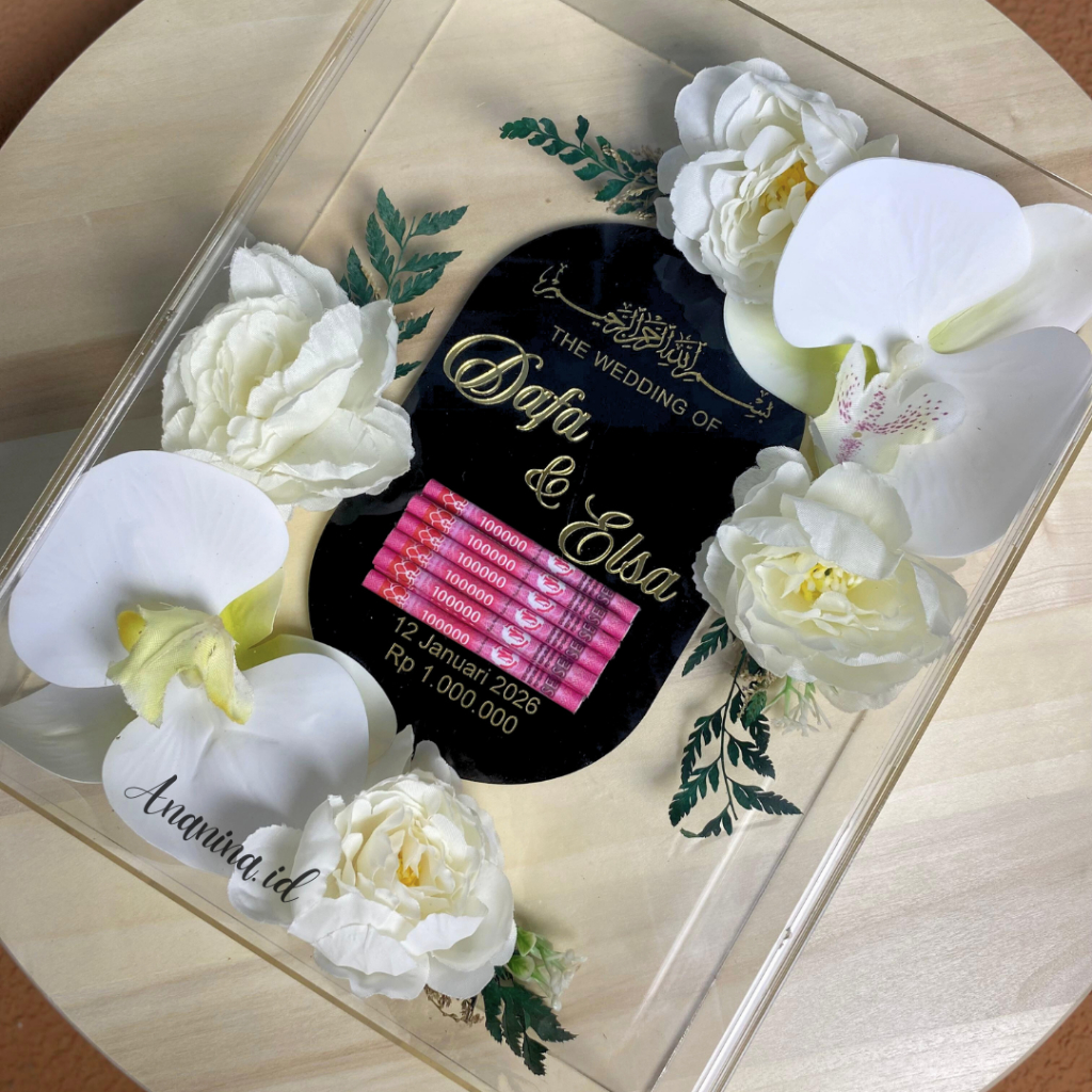 Mahar Akrilik Pernikahan Minimalis Modern Frame Transparan