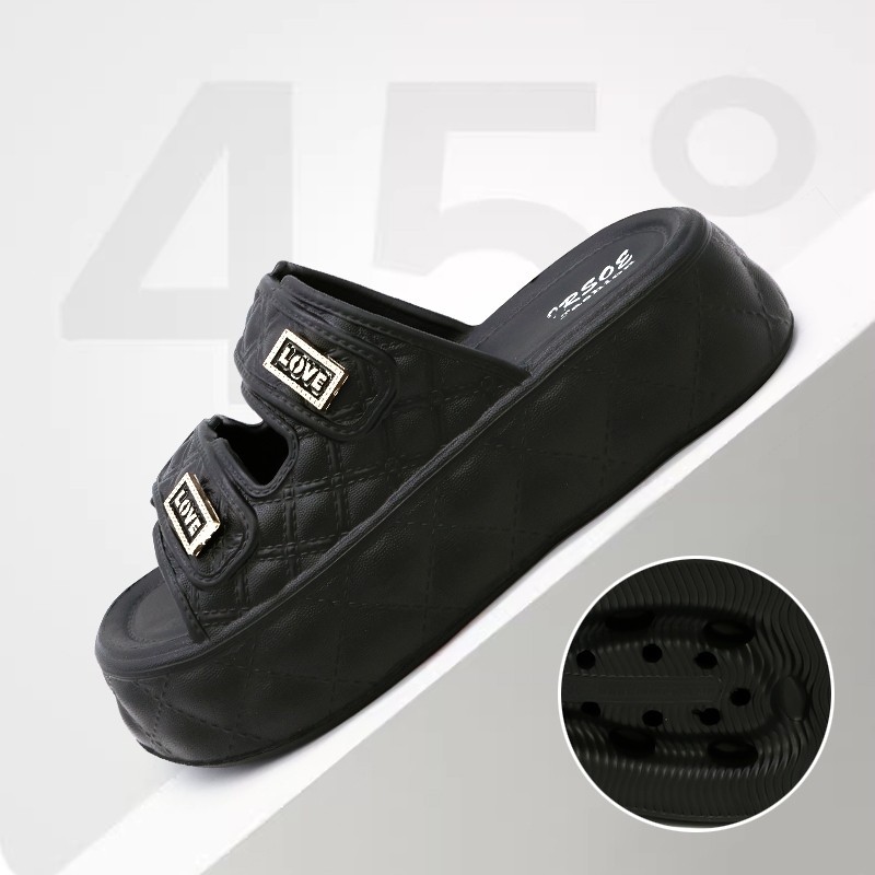 LATENY Sandal Jelly Slop Wedges Wanita Platform Tinggi 5cm Motif Double Strap EVA