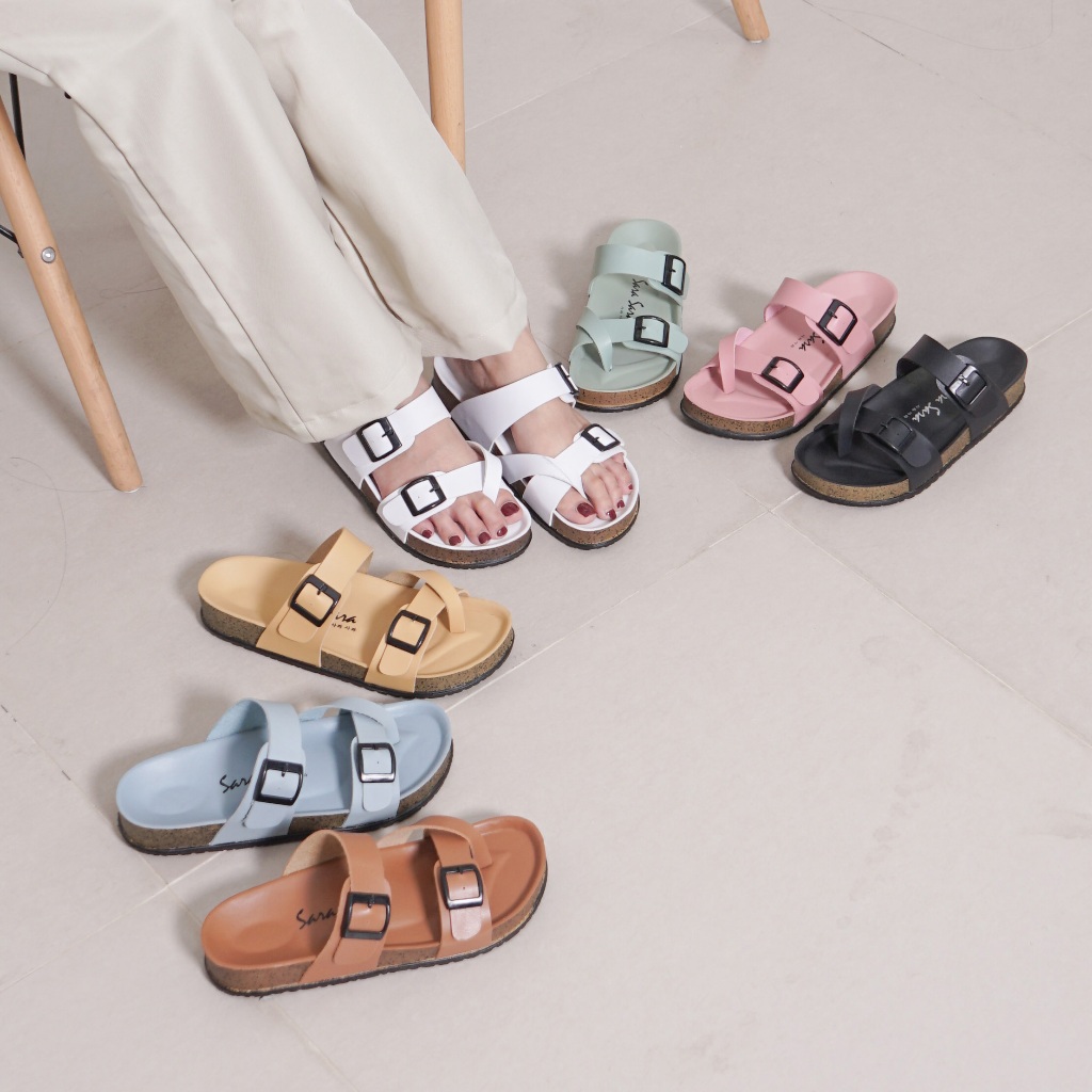 Sara Sara Kelly Sandal Flat Wanita Gesper Birken