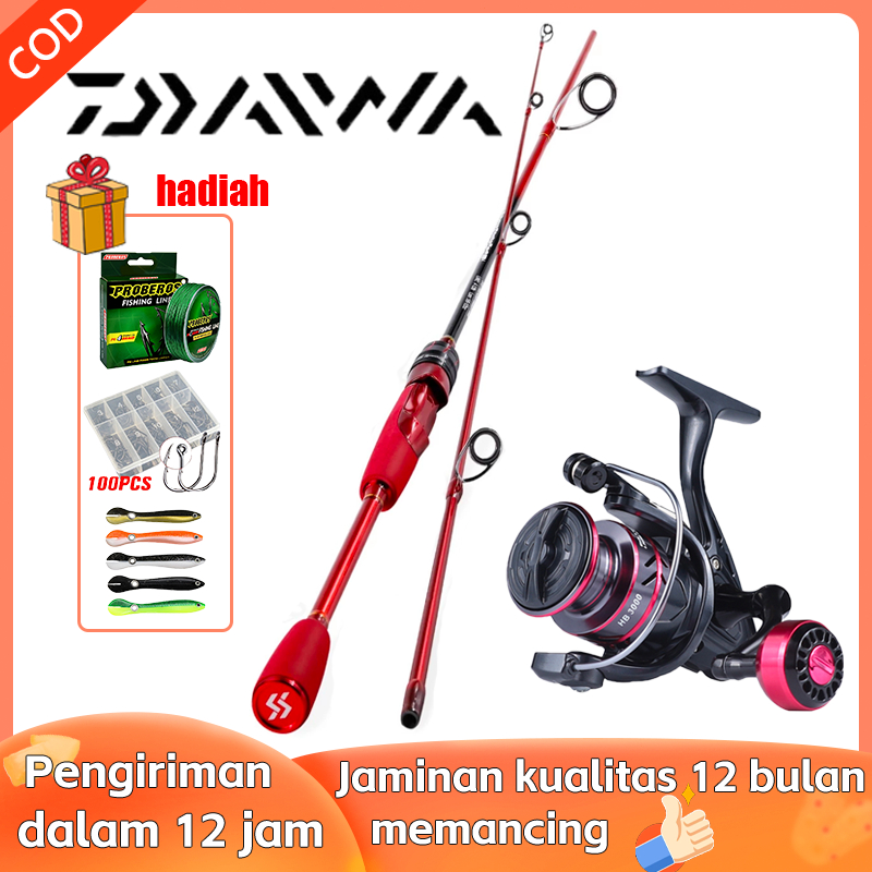 Set Pancing Lengkap DAIWA-Serat Karbon Ultralight, Spinning Rod & Reel + 100M Senar & Umpan