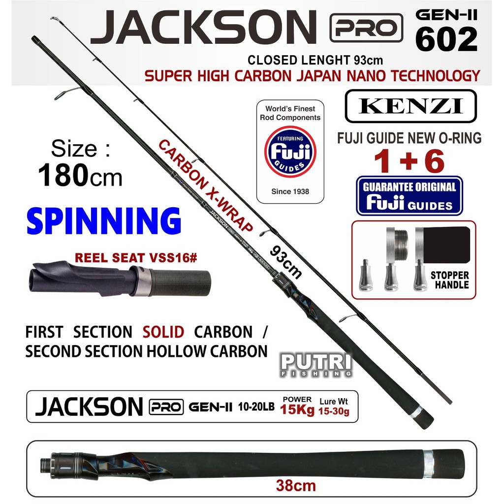 JORAN KENZI JACKSON PRO 602 GEN-II - Joran Spinning Full X-Wrap Carbon Solid | Full Fuji Guide | 5-12lbs 6-14lbs 7-15lb