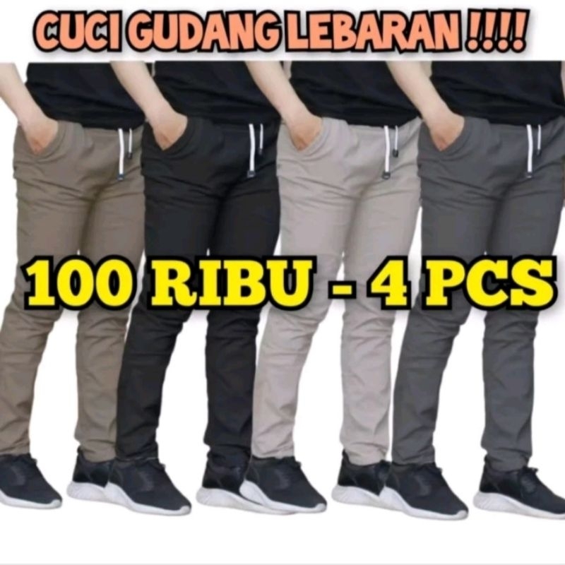 PROMO 100 RIBU 4 Celana Panjang Pria Dewasa ChinoNON STRETCH Gaya Santai Nyaman dengan Pinggang karet elastis standar jumbo big size