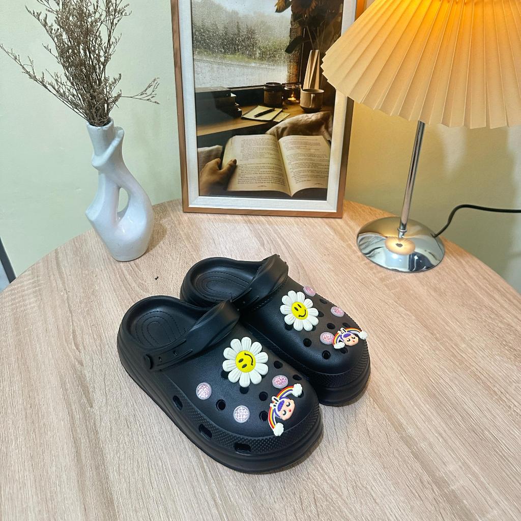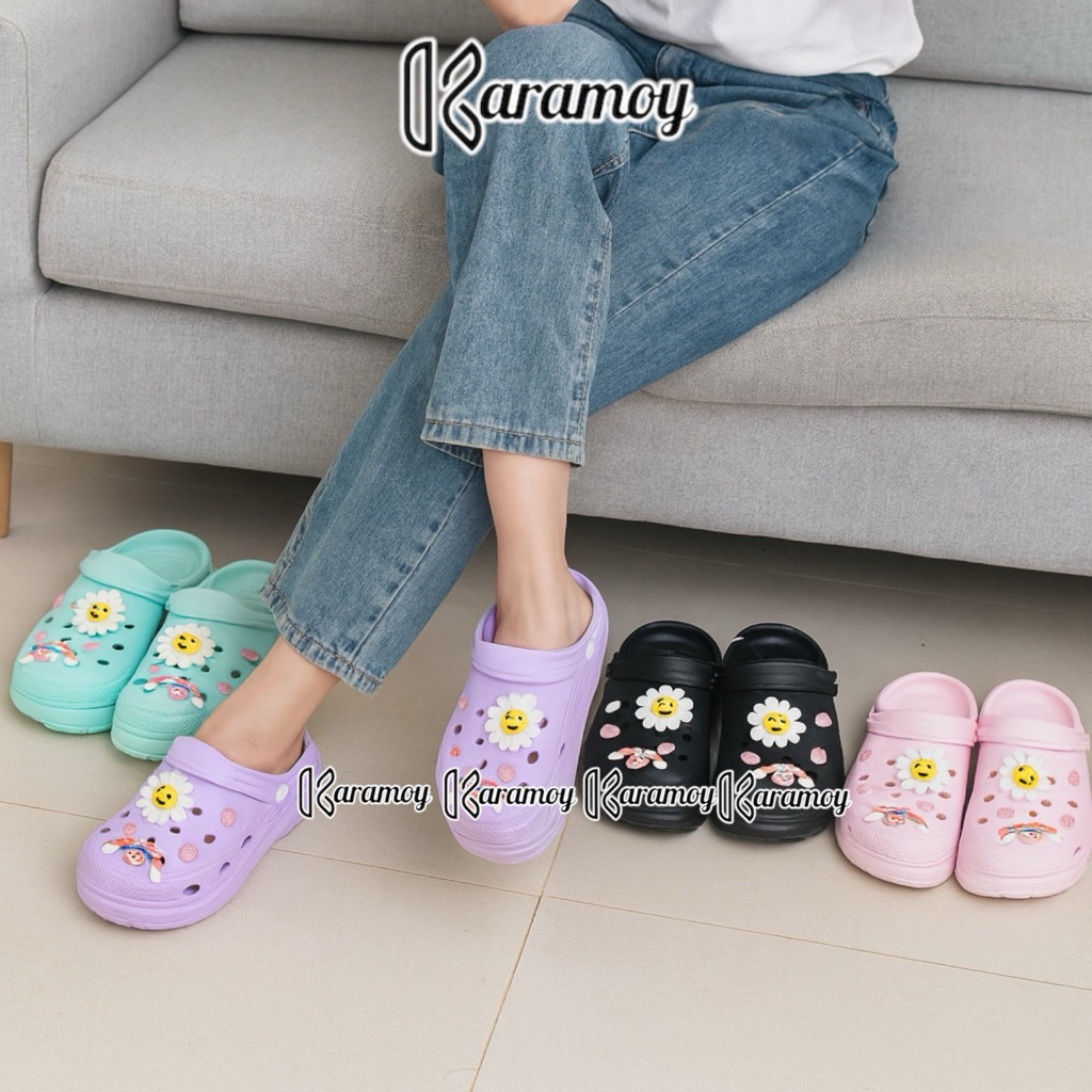Sandal Wanita Jelly BAIM MOTIF Import / Sendal Kodok baim cross tinggi 5 cm karet tebal import