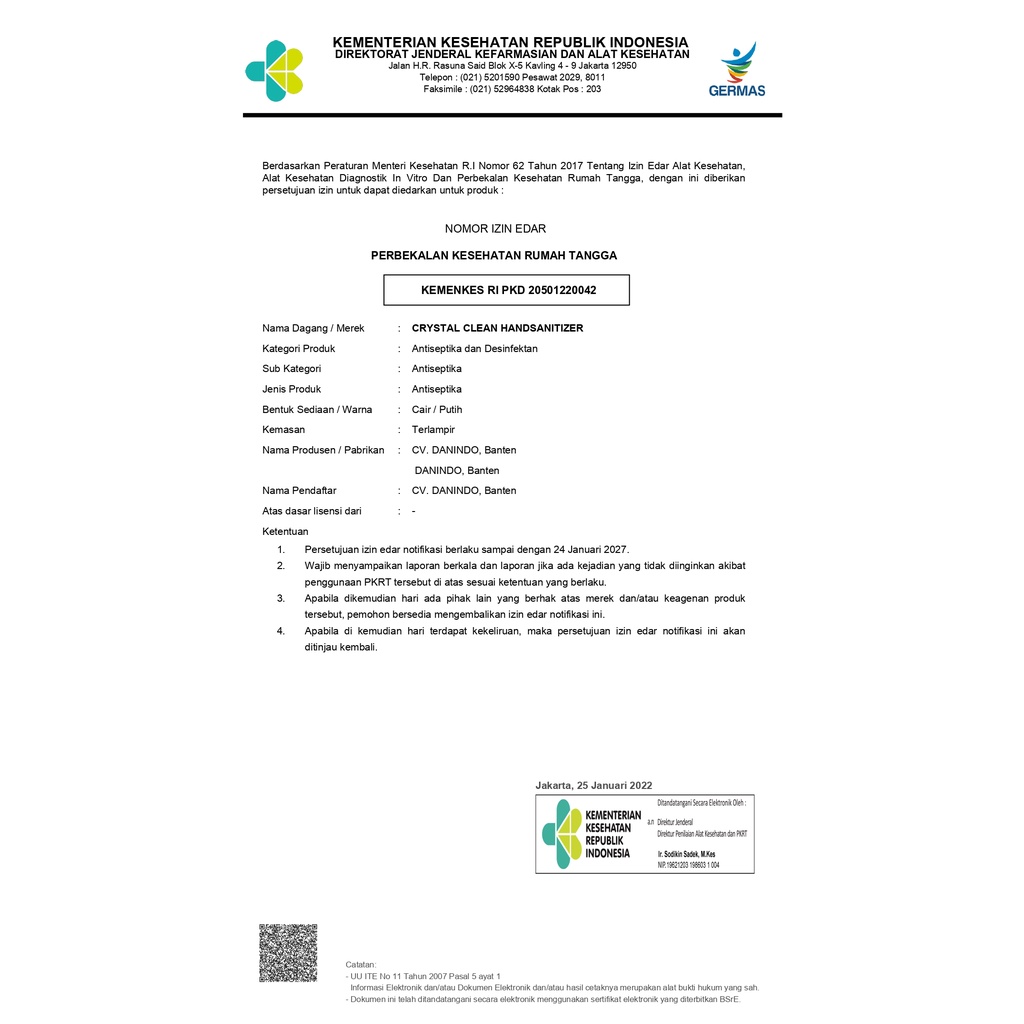 hand sanitizer 1 liter cair bukan gel Crystal Clean Kemenkes