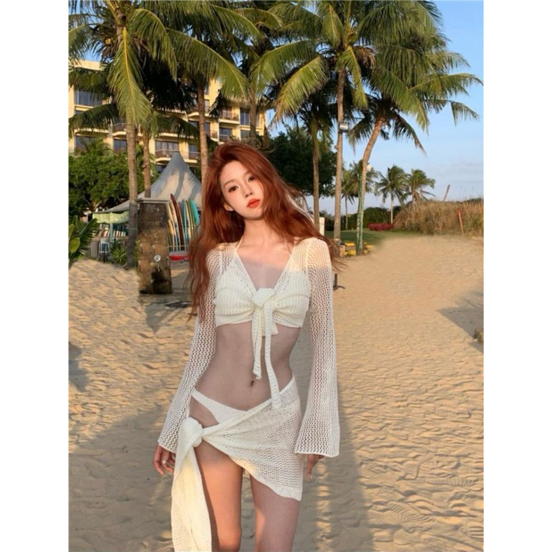 CORAL JENNIE BIKINI SET 4 PCS BEIGE | BAJU RENANG WANITA BAJU PANTAI BEACHWEAR SWIMWEAR
