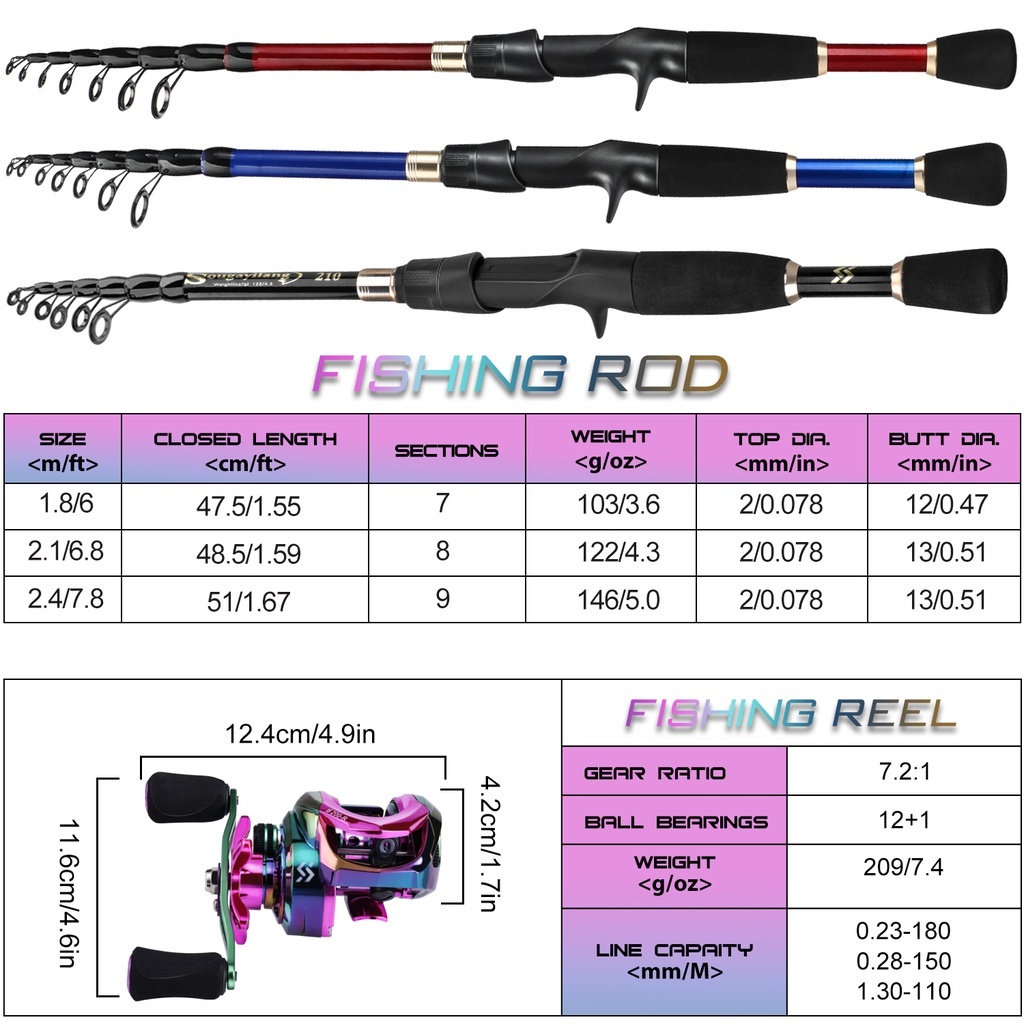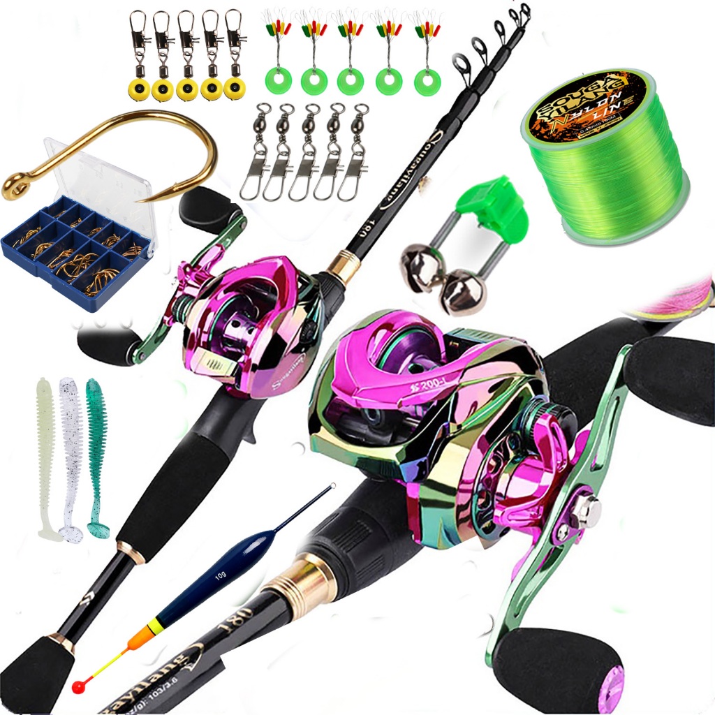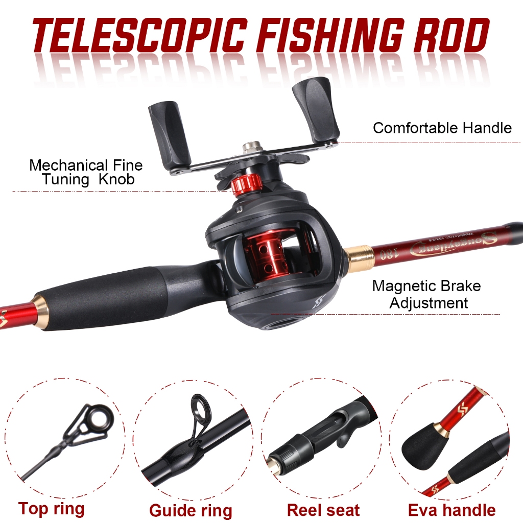 Set Pancing Joran ultralight Joran Pancing Telescopic Fishing Rod 1.8m 2.1m 2.4m with Fishing Reel 7.2:1 High Speed Ult
