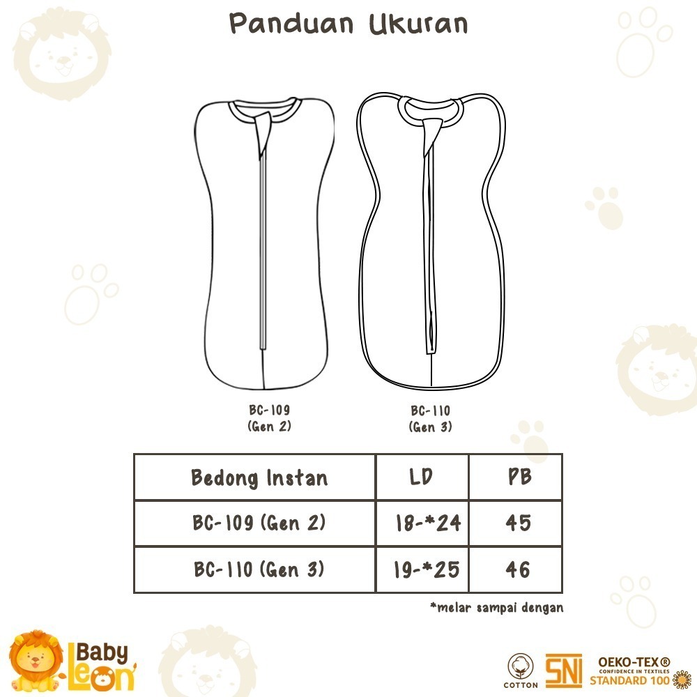 BABYLEON Bedong Bayi 0-3 Bulan Bedong Bayi Instan BC-109 Baju Bayi Perlengkapan Bayi Selimut Bayi Selimut Bedong Instan Perlengkapan Selimut Bayi Newborn