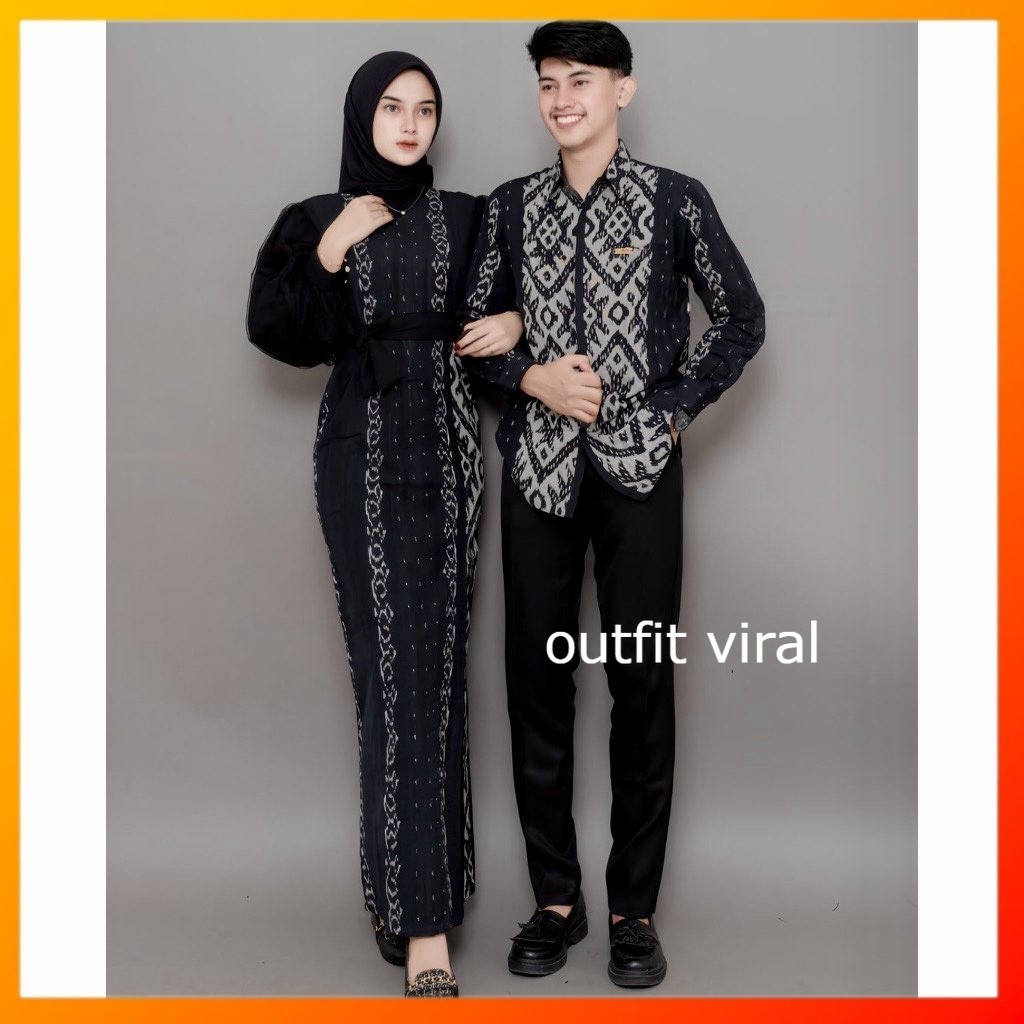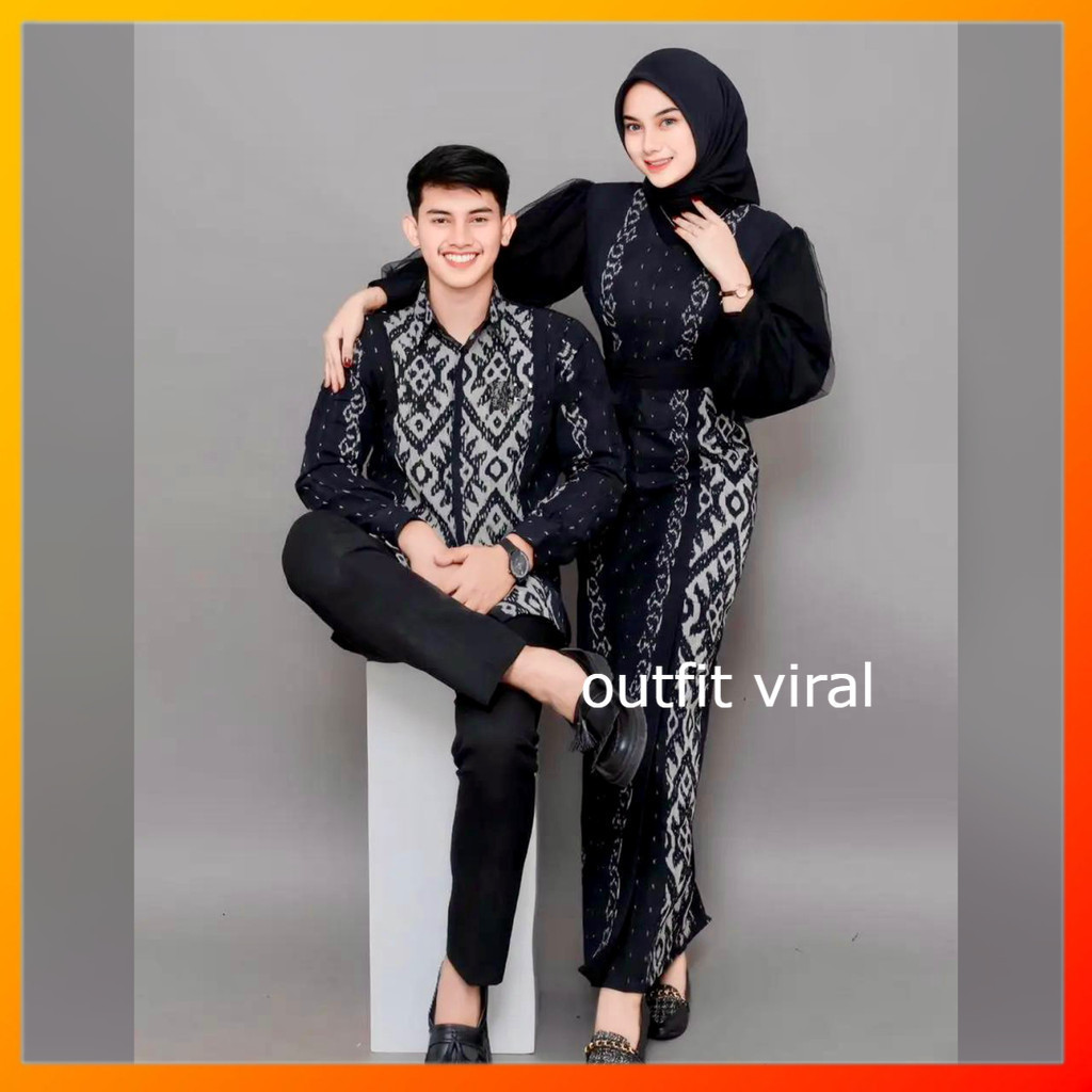 BAJU TENUN COUPLE NEW PADMA BLACK DRESS DAN KEMEJA OUTFIT VIRAL
