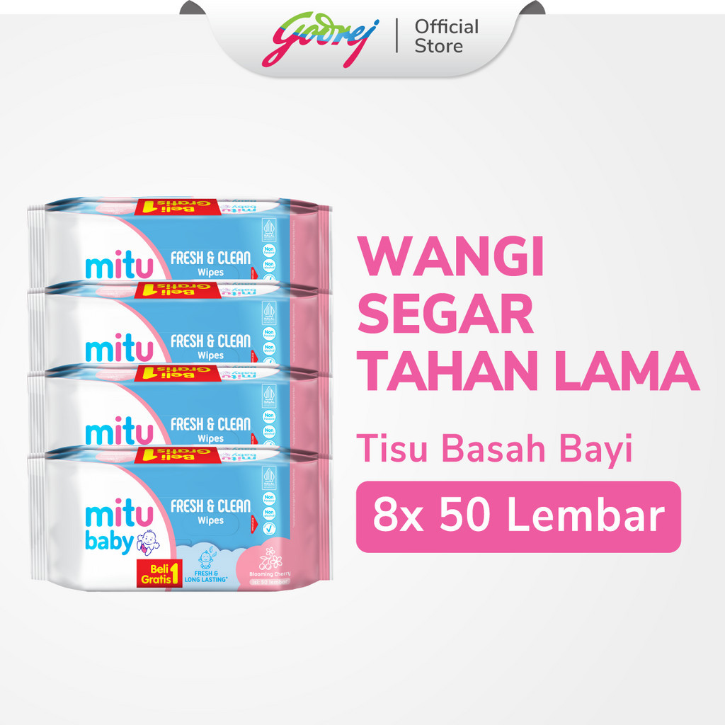 [Beli 1 Gratis 1] Mitu Baby Fresh & Clean Wipes Blooming Cherry 50'S - Tisu Basah Bayi