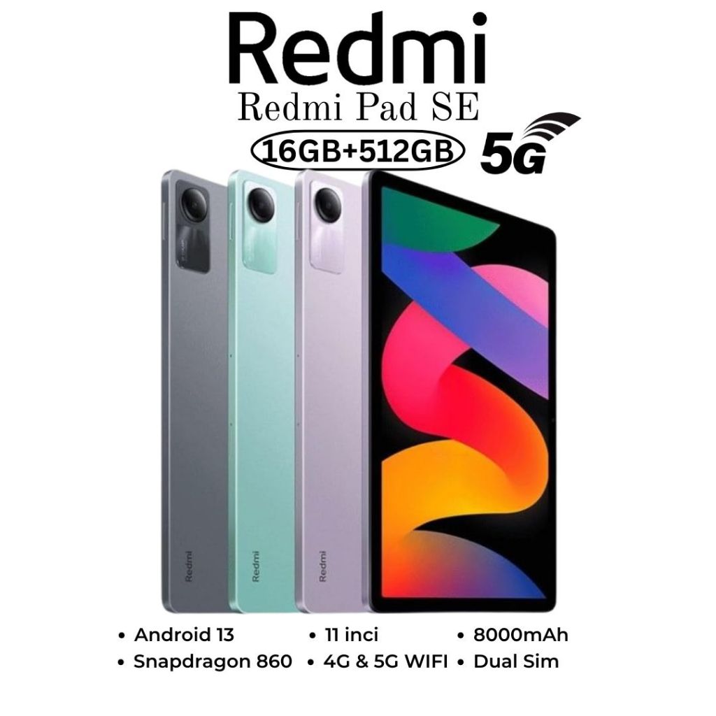 Ready Stock Tablet Xiaomi Redmi Pad SE 11 inci | Snapdragon 680 | Android 13 | RAM 8GB + ROM 256GB Garansi 1 tahun hadiah gratis