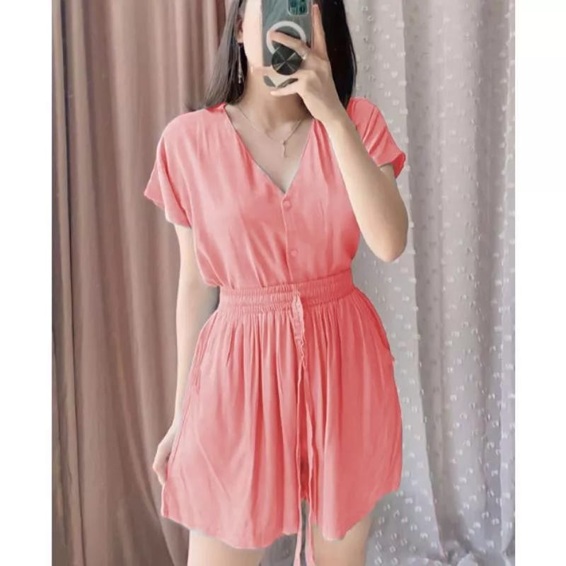 Piyama Wanita Rayon - Model Babydoll Kancing Hidup