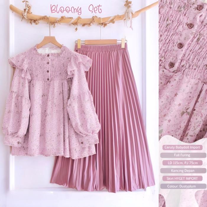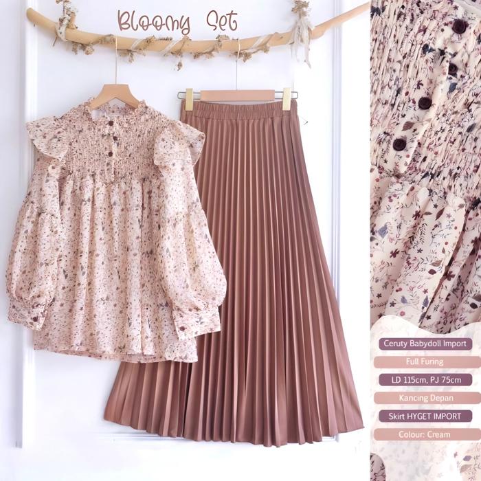 MUFASH - BLOOMY SET / SETELAN WANITA DEWASA LD 110 (ATASAN BLOUSE CERUTY DAN ROK PLISKET) BY FASHION SOLO MUSLIM BAWAHAN